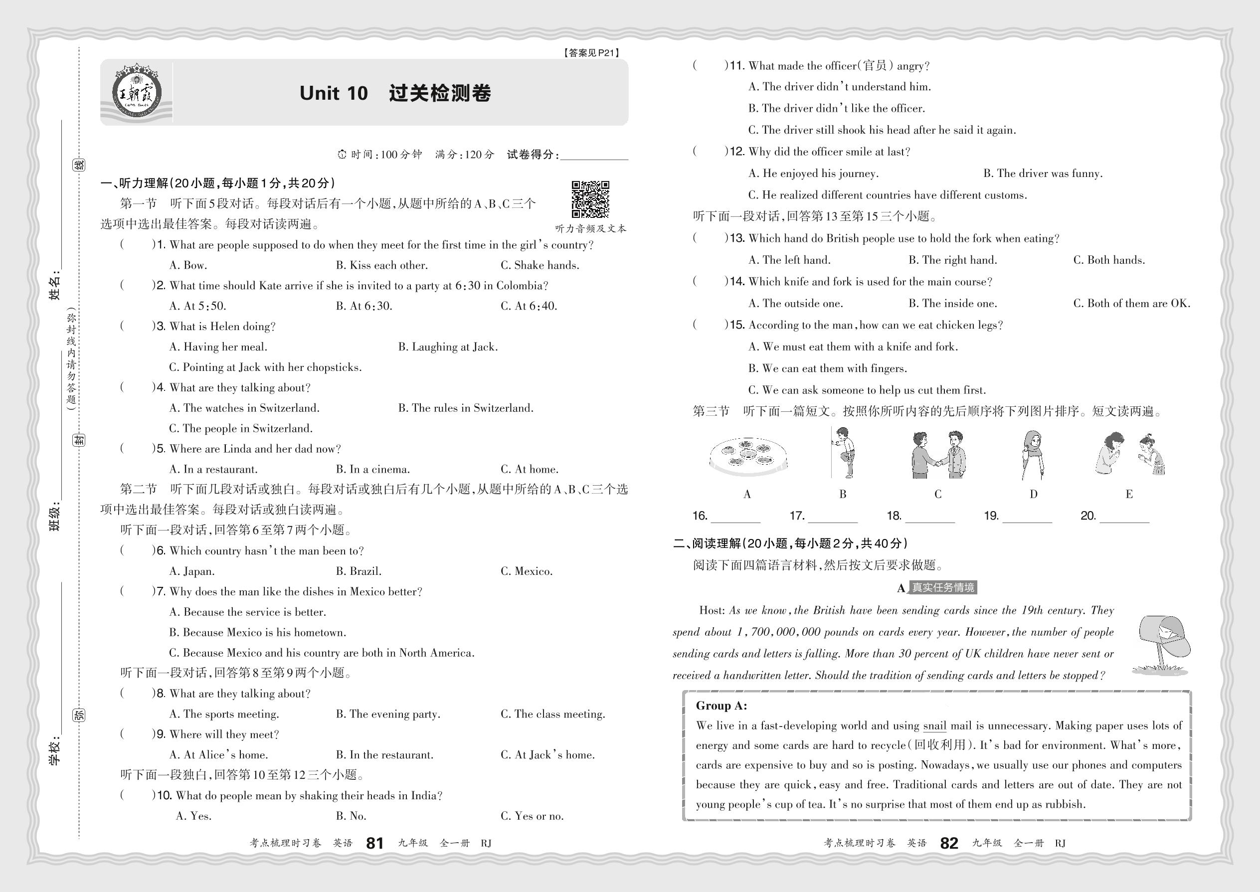 2024-2025学年九年级英语人教版 Unit 10 过关检测卷