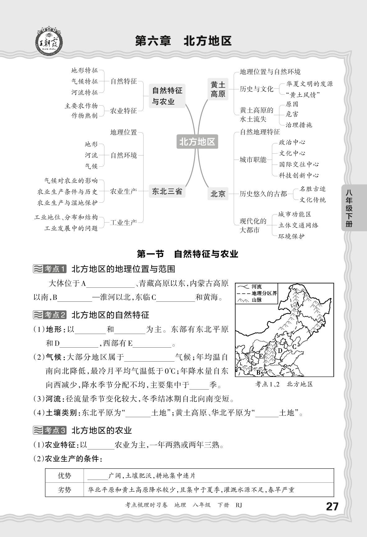 2025下册八年级地理人教版 考点梳理手册——第六章 北方地区
