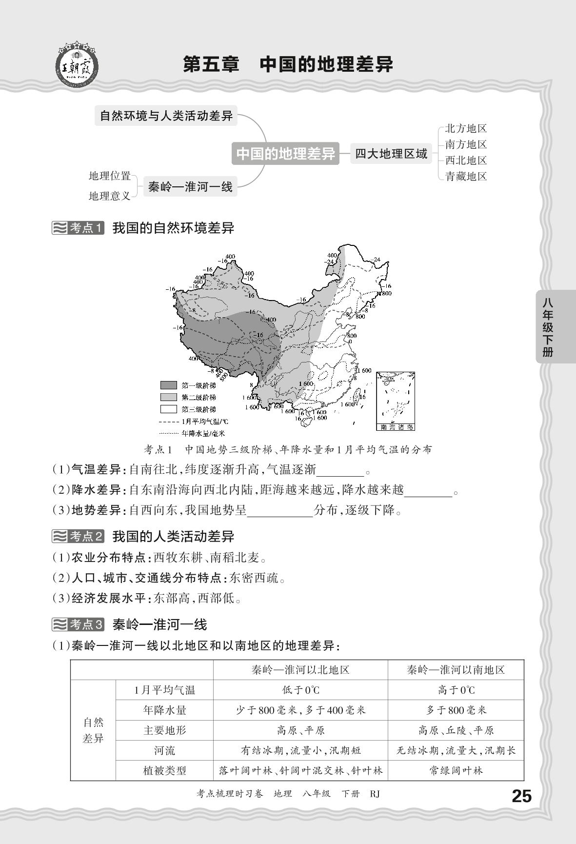 2025下册八年级地理人教版 考点梳理手册——第五章 中国的地理差异