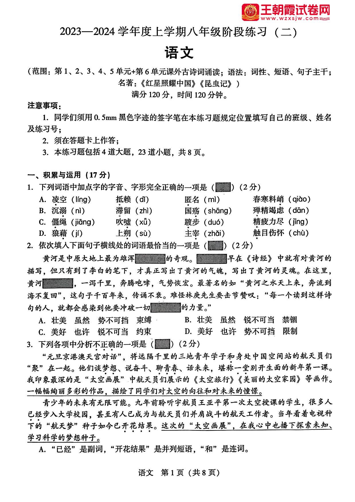 辽宁省沈阳市2023-2024学年度上学期阶段练习11月月考八年级语文(人教版)