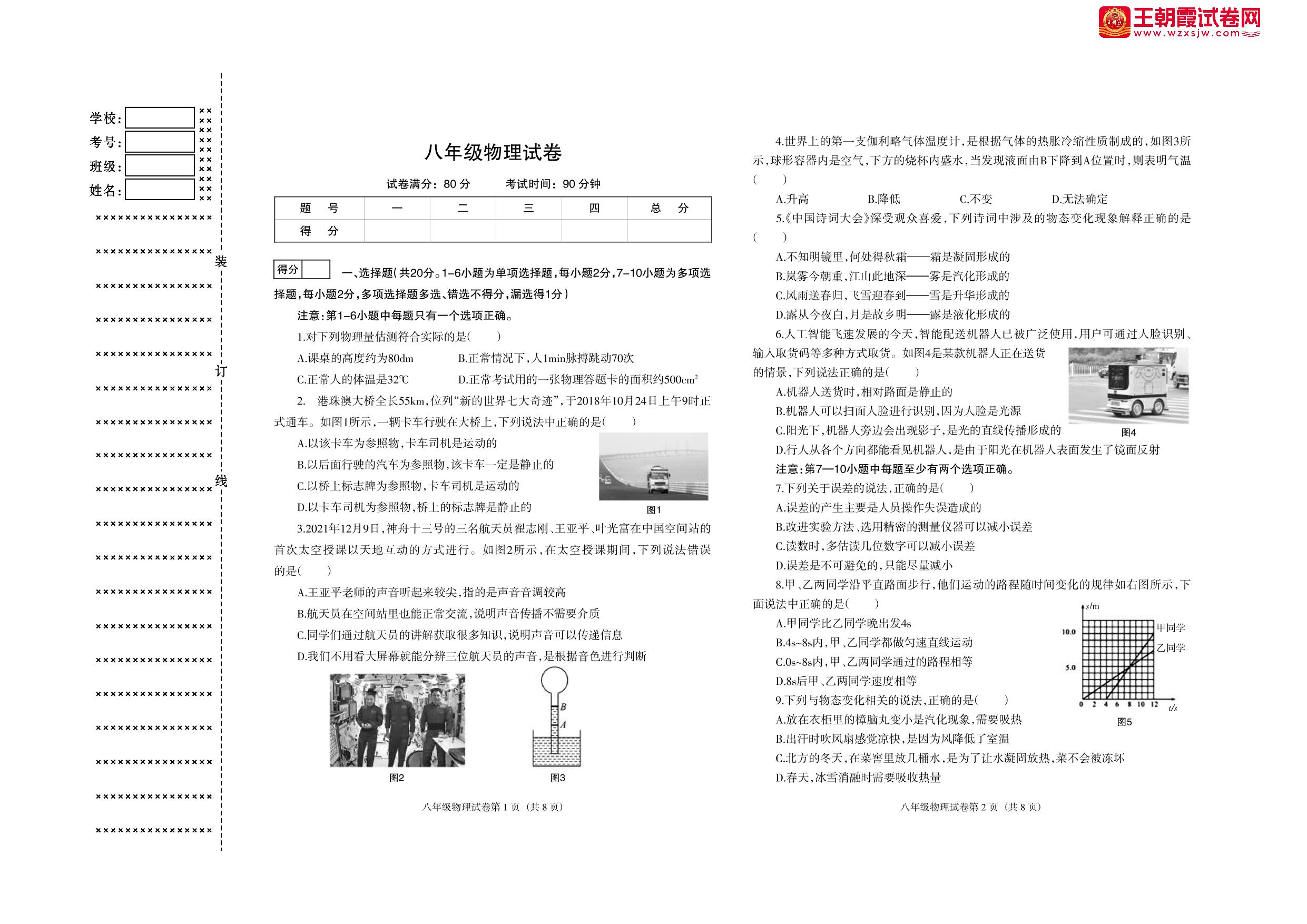辽宁省沈阳市于洪区2023-2024学年上学期期中考试试卷八年级物理(人教版)