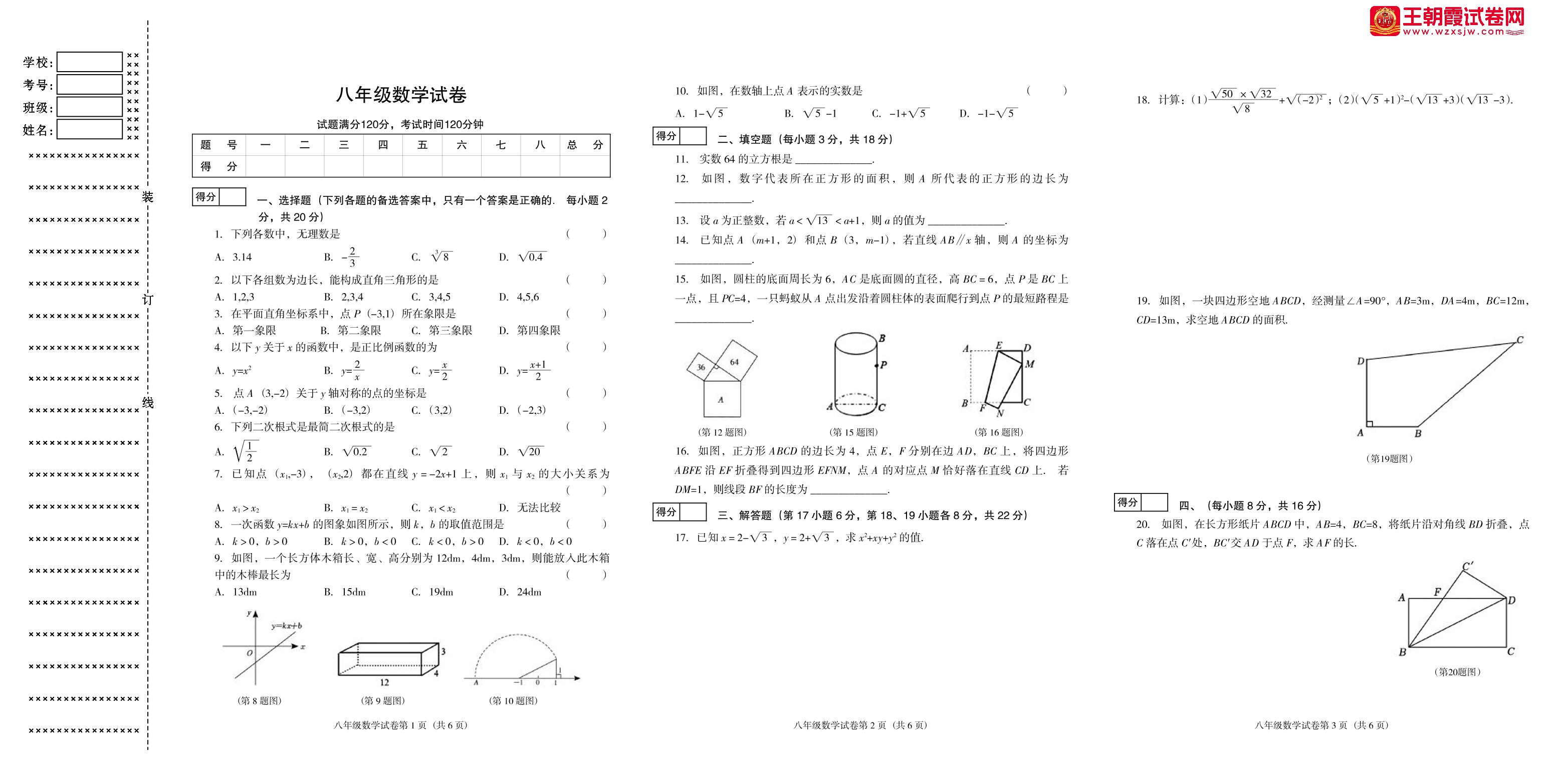 辽宁省沈阳市于洪区2023-2024学年上学期期中考试试卷八年级数学(北师版)