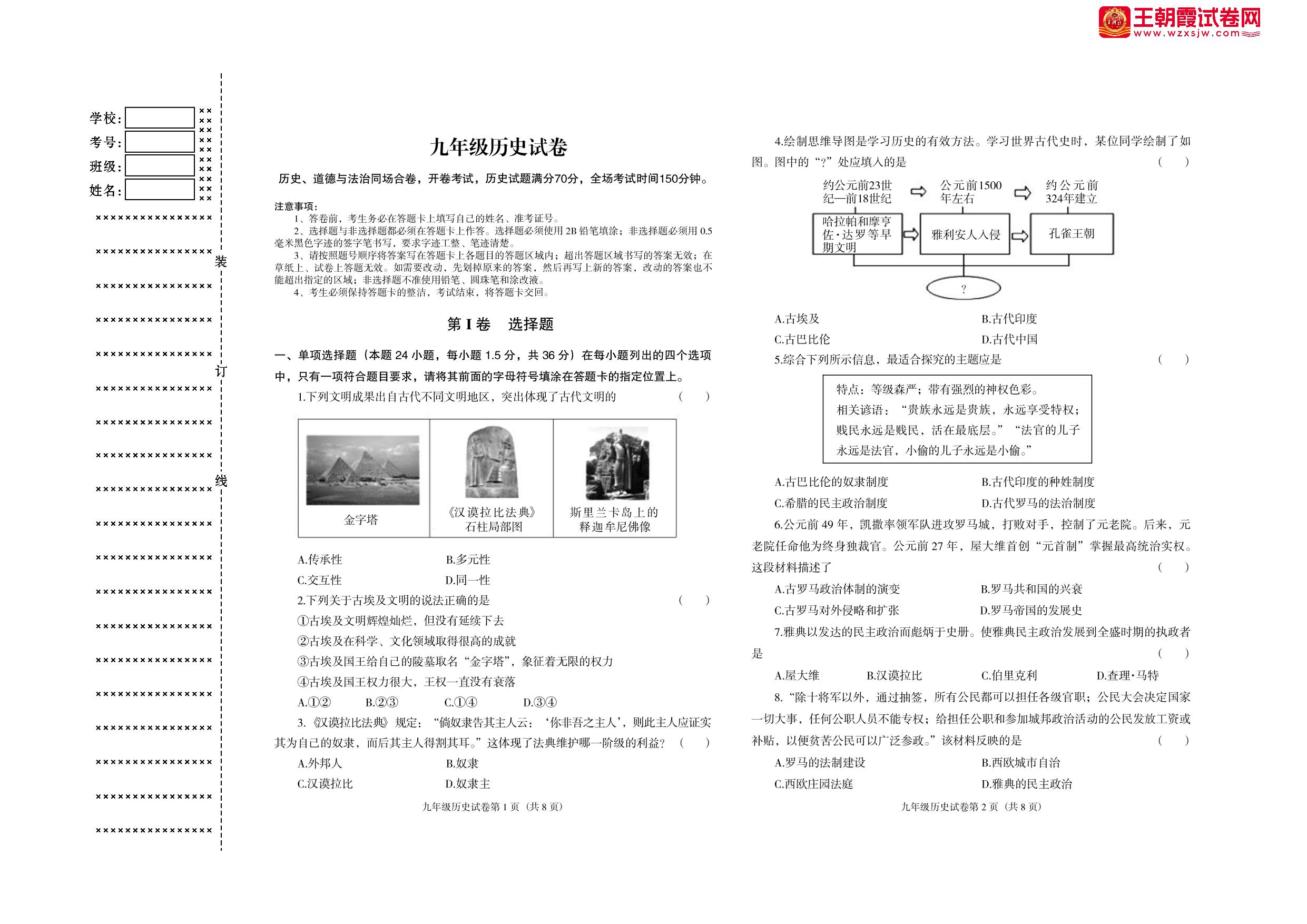 辽宁省沈阳市于洪区2023-2024学年上学期期中考试试卷九年级历史(人教版)
