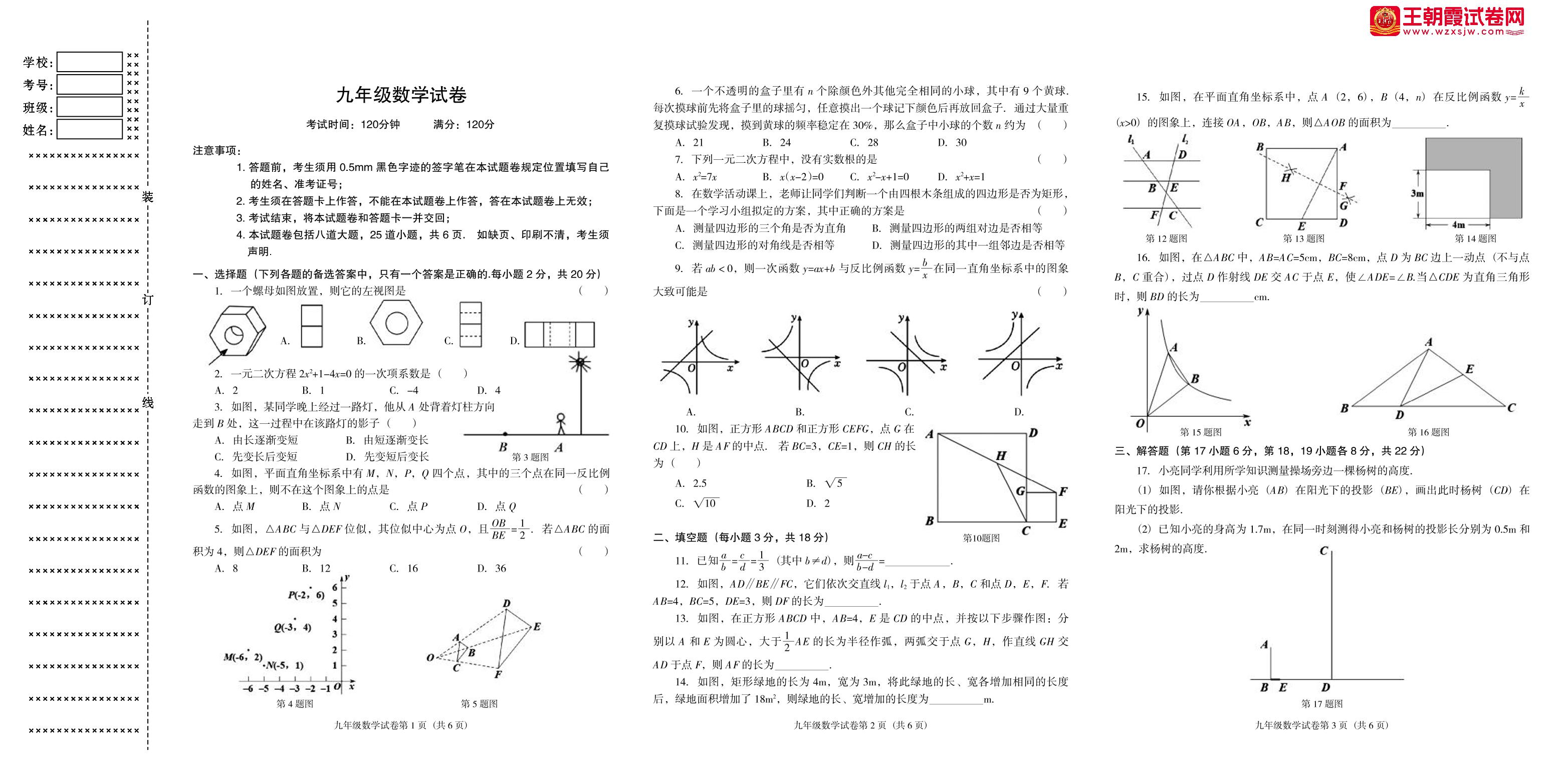 辽宁省沈阳市于洪区2023-2024学年上学期期中考试试卷九年级数学(北师版)