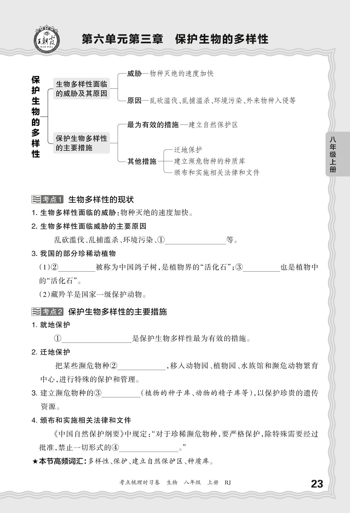2024上册八年级生物人教版 考点梳理手册——第六单元第三章 保护生物的多样性