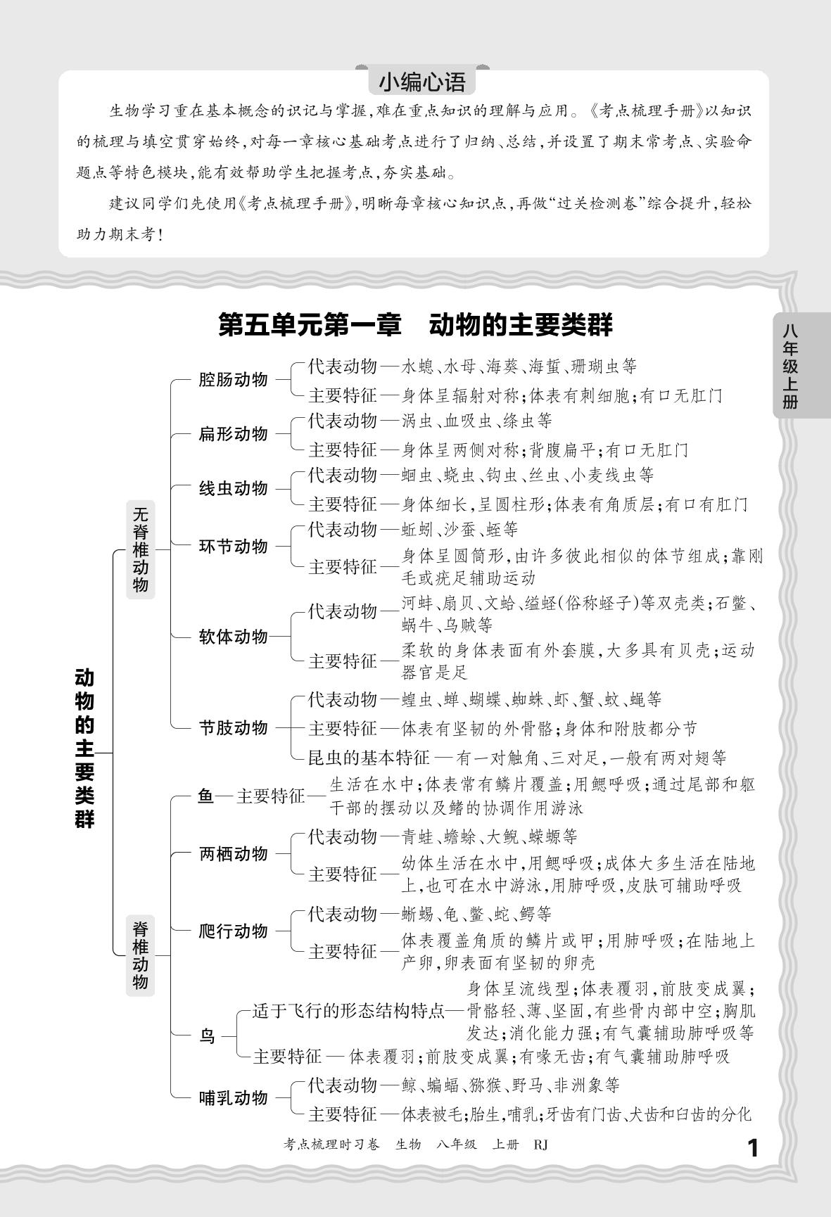2024上册八年级生物人教版 考点梳理手册——第五单元第一章 动物的主要类群