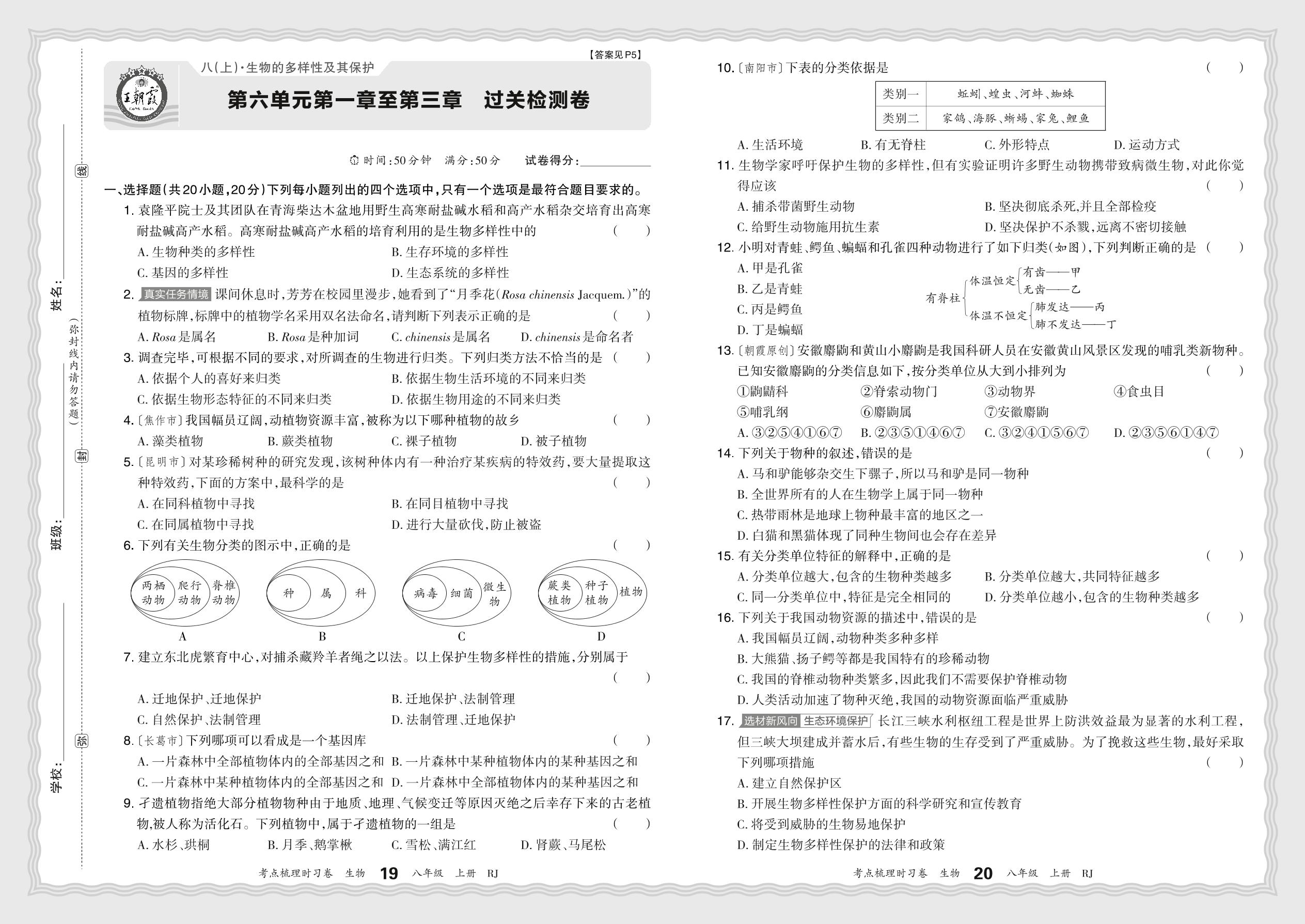 八年级生物人教版上册单元卷