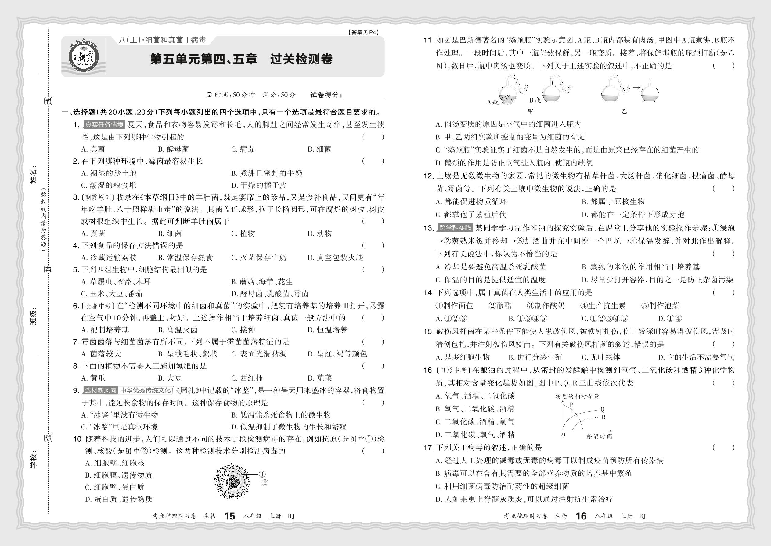 2024上册八年级生物人教版 第五单元第四、五章 过关检测卷