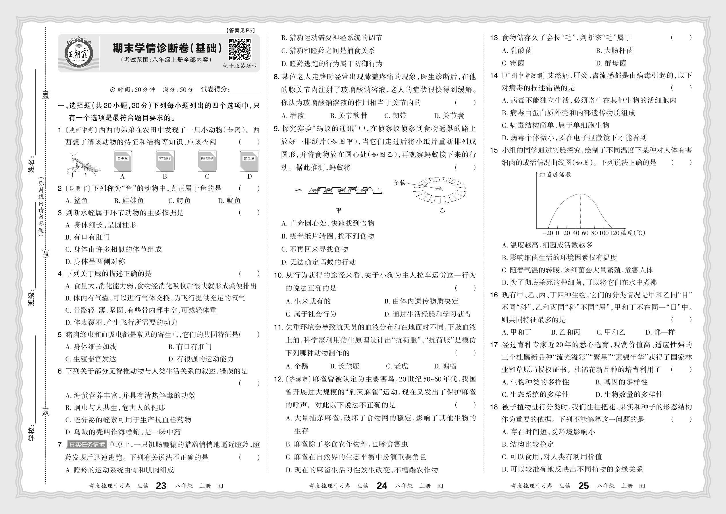 八年级生物人教版上册期末卷