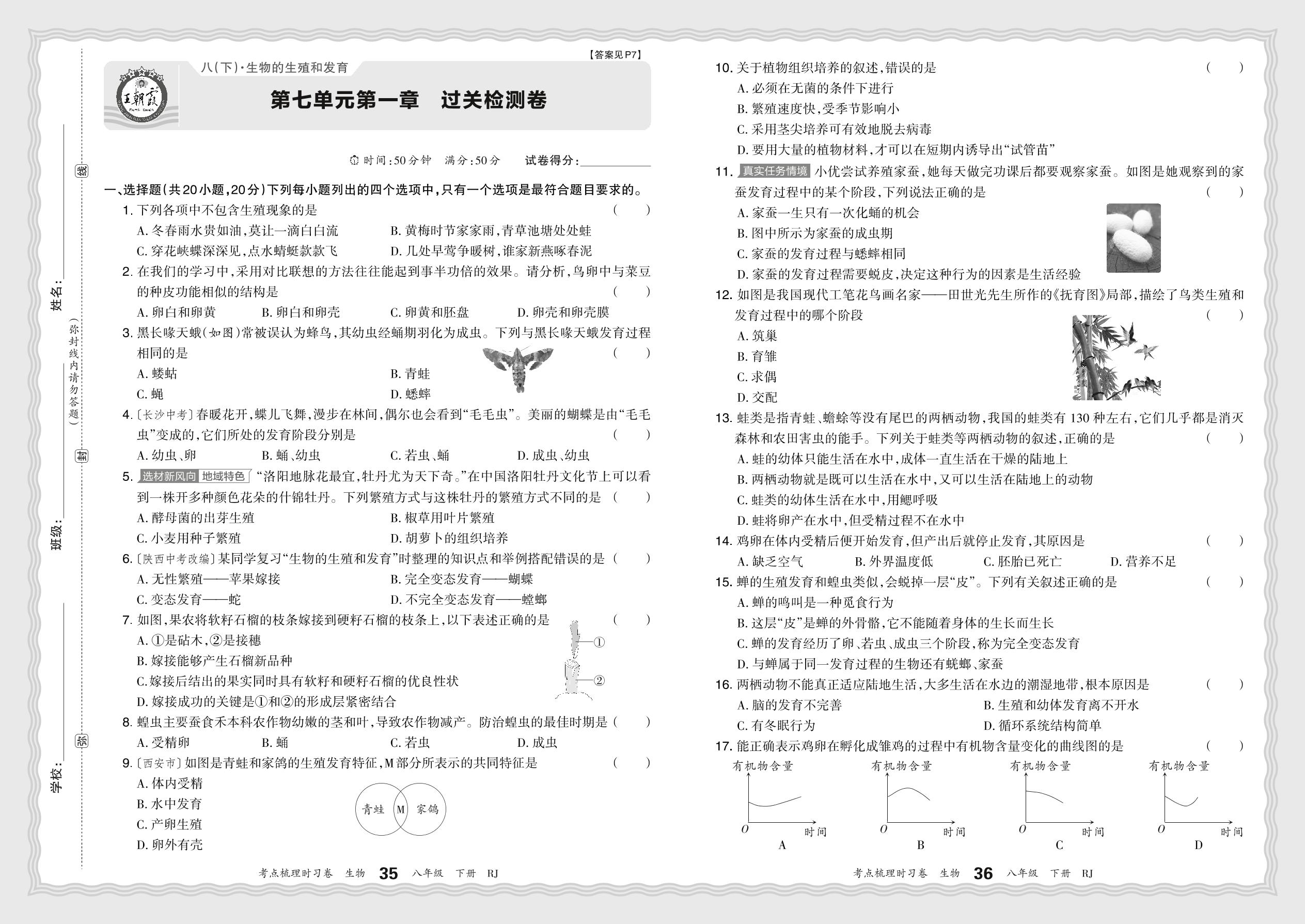 2025下册八年级生物人教版 第七单元第一章 过关检测卷