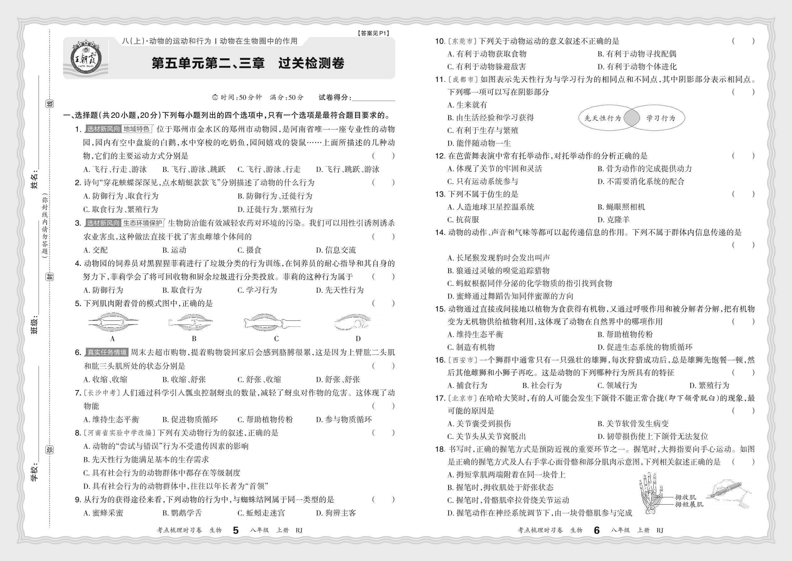 八年级生物人教版上册单元卷