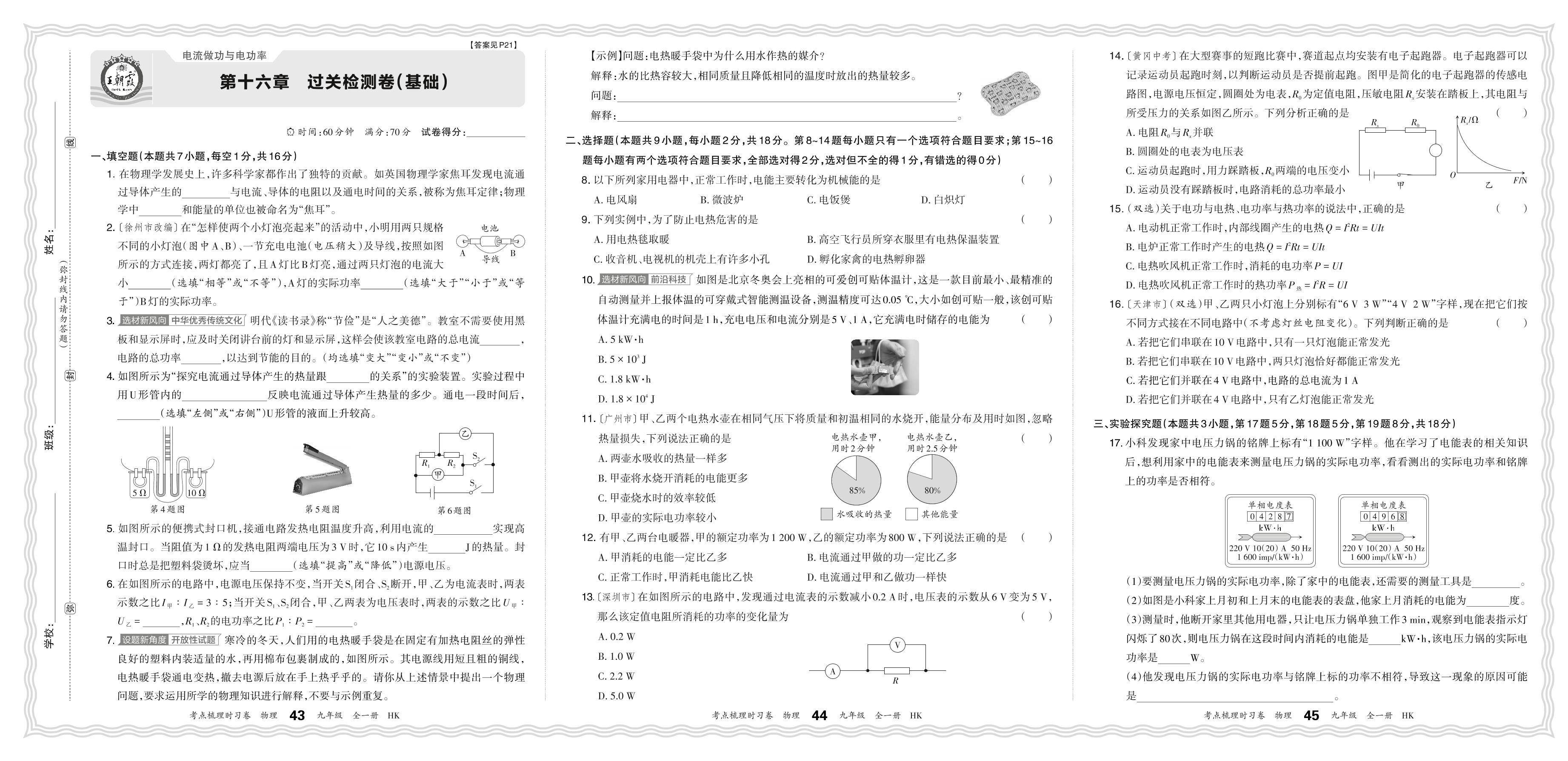 九年级物理沪科版全一册单元卷