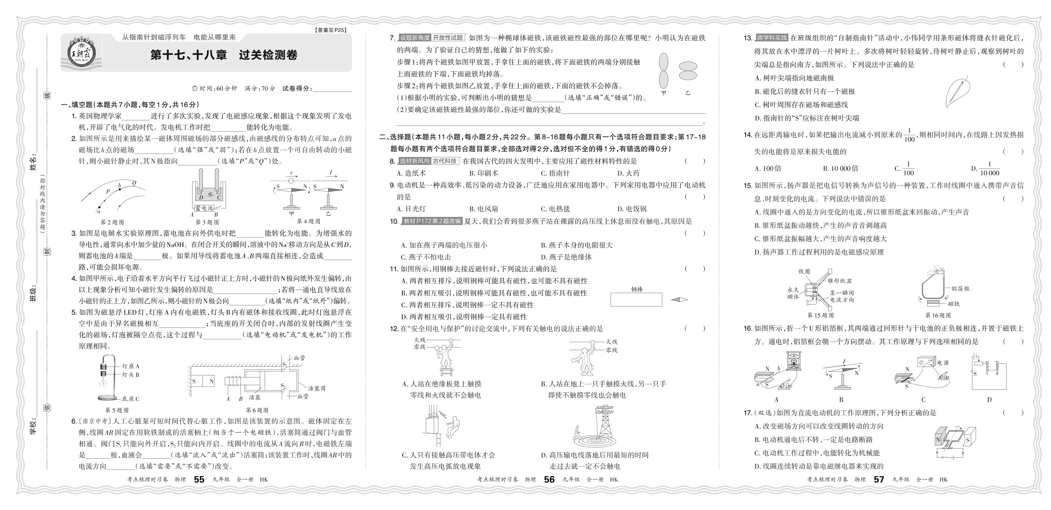 2024-2025学年九年级物理沪科版 第十七、十八章 过关检测卷