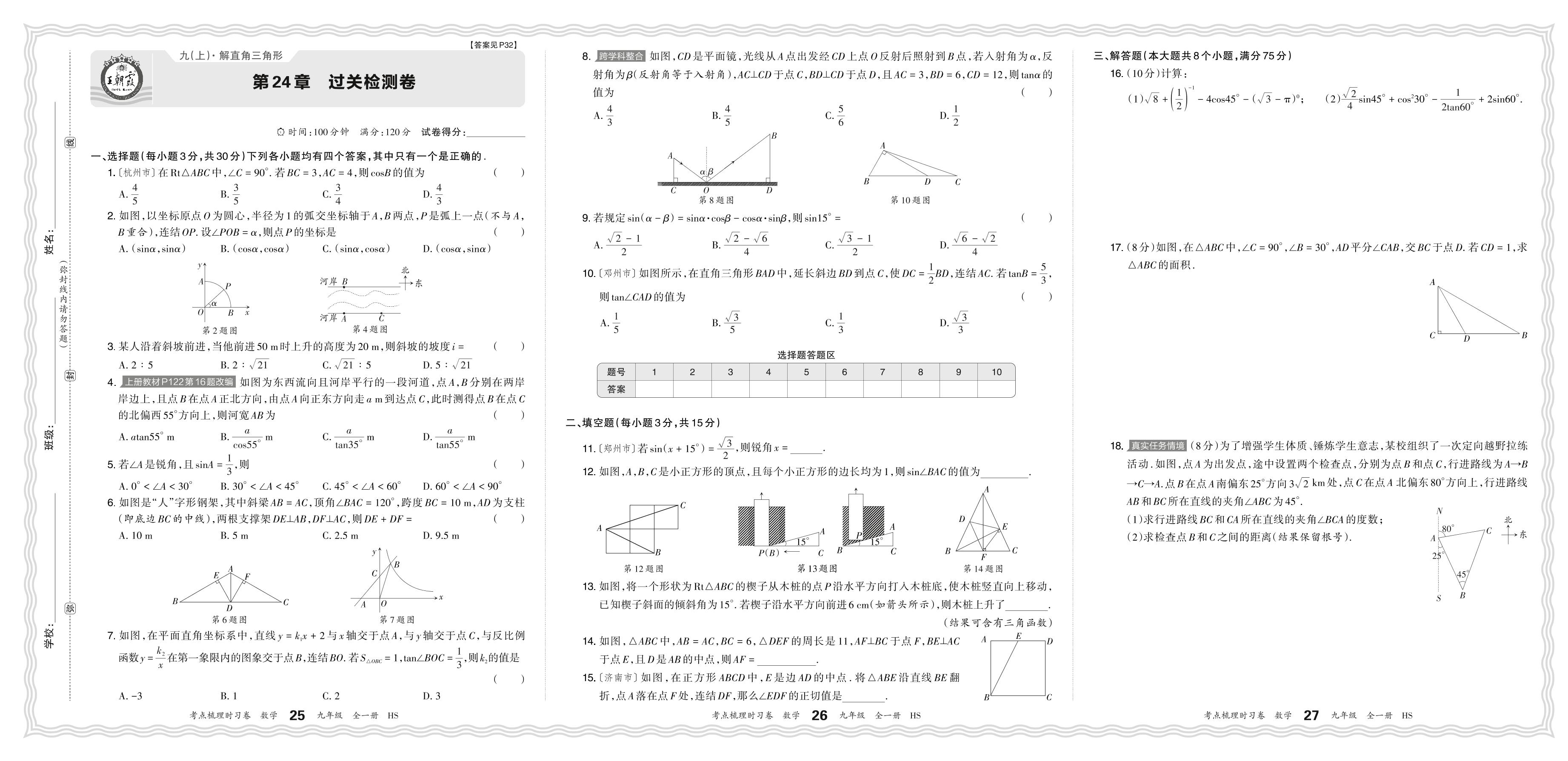2024上册九年级数学华师版 第24章 过关检测卷