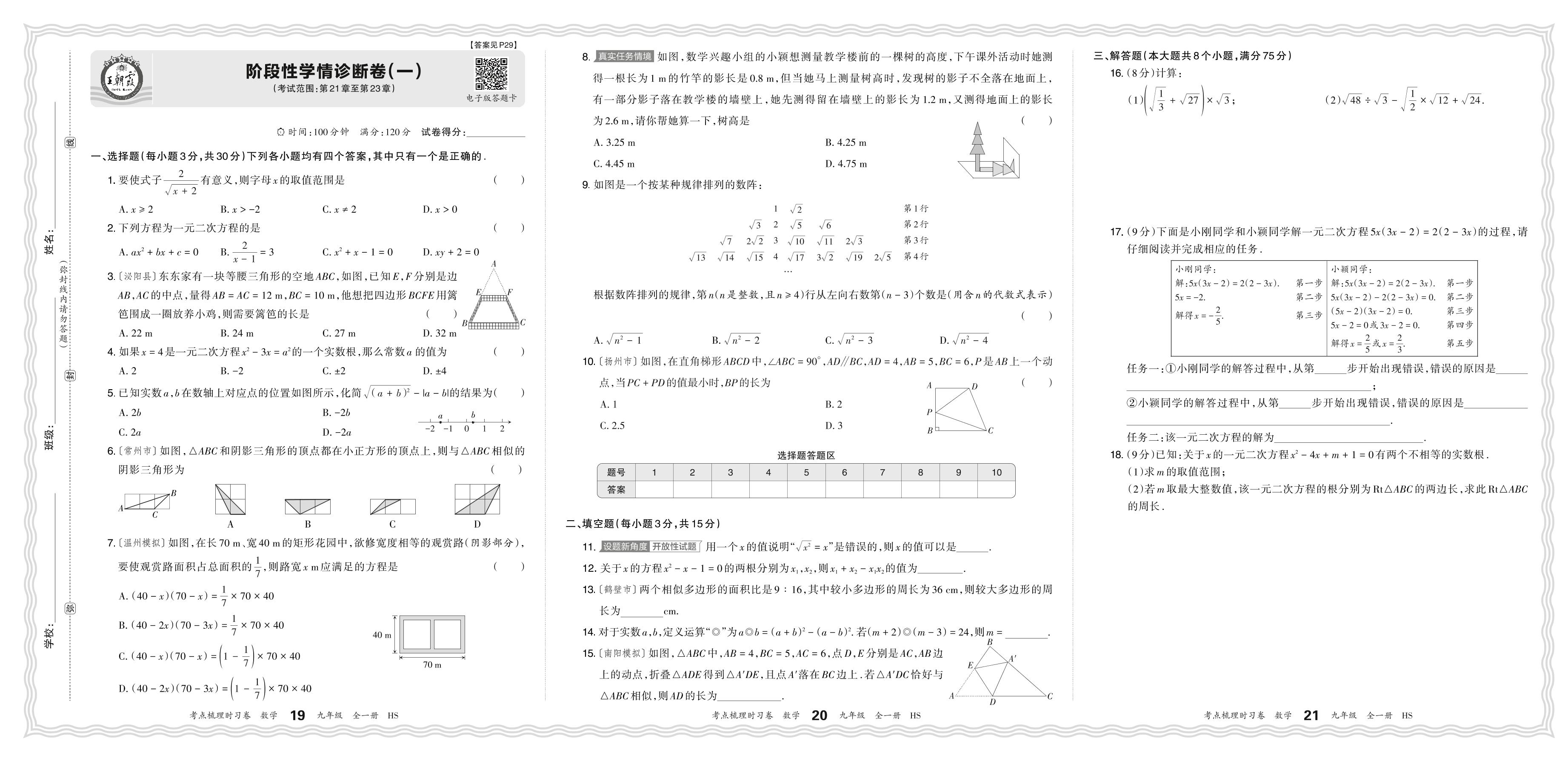 2024上册九年级数学华师版 阶段性学情诊断卷(一)
