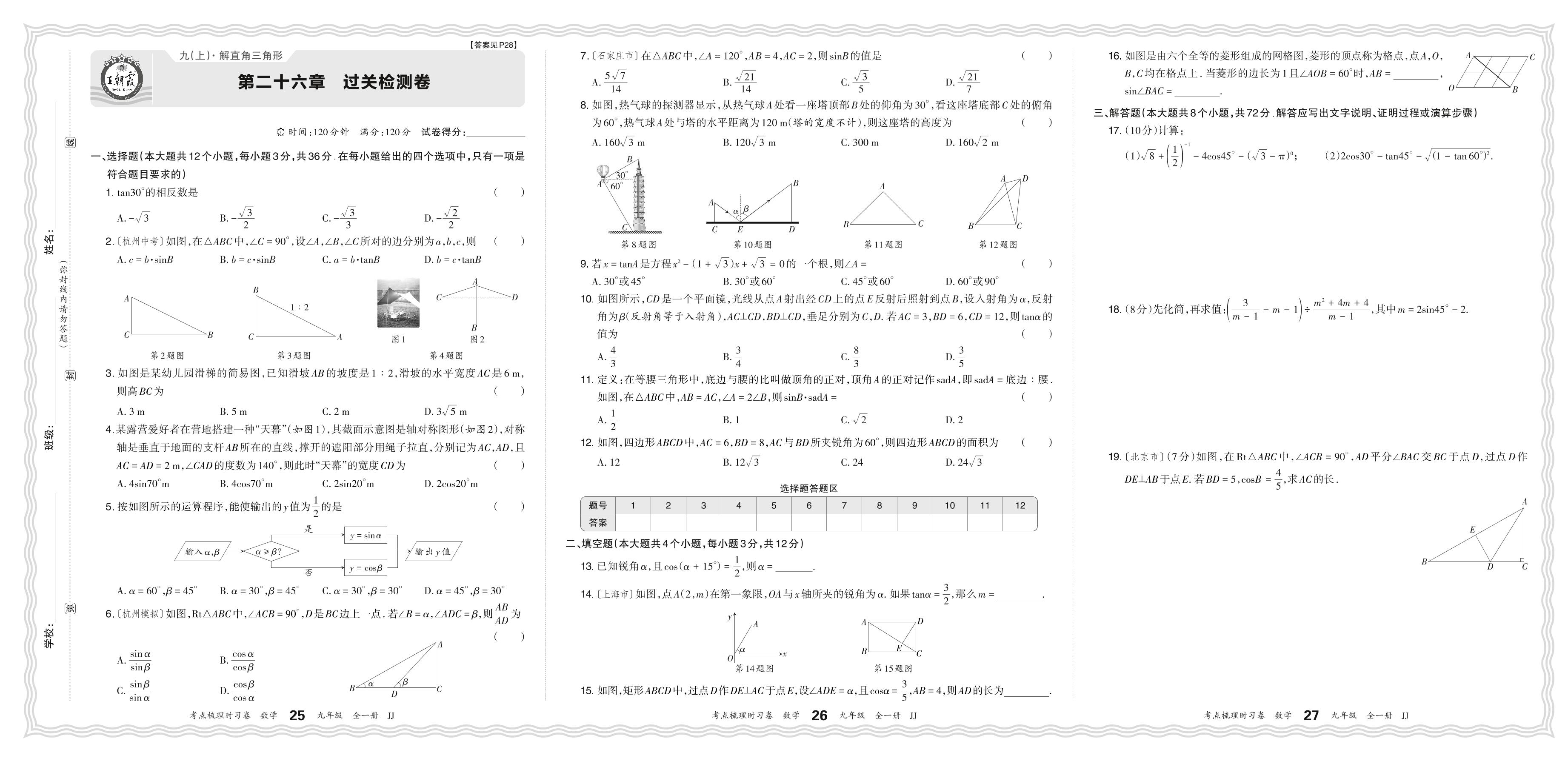 2024上册九年级数学冀教版 第二十六章 过关检测卷