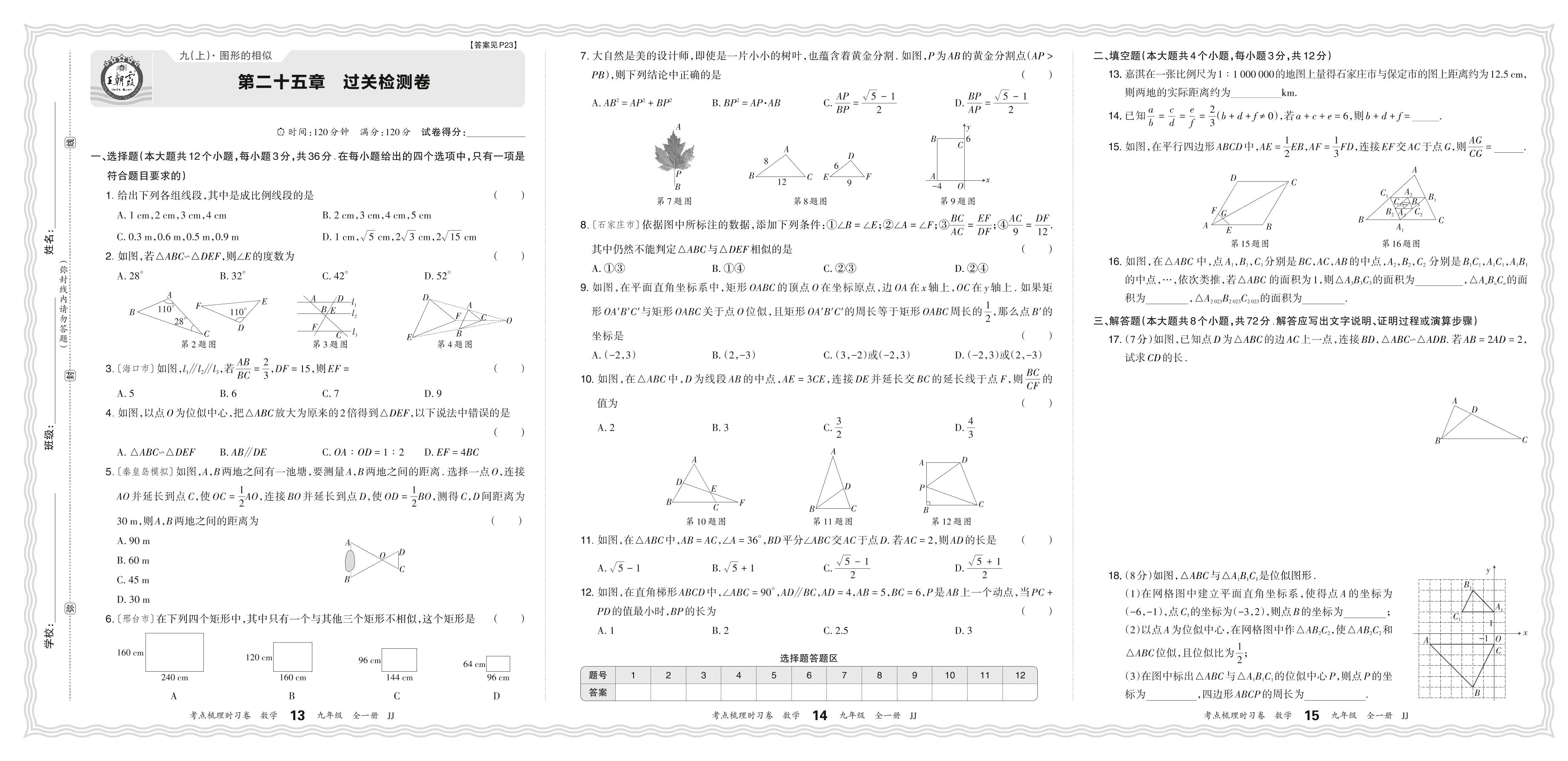 2024上册九年级数学冀教版 第二十五章 过关检测卷