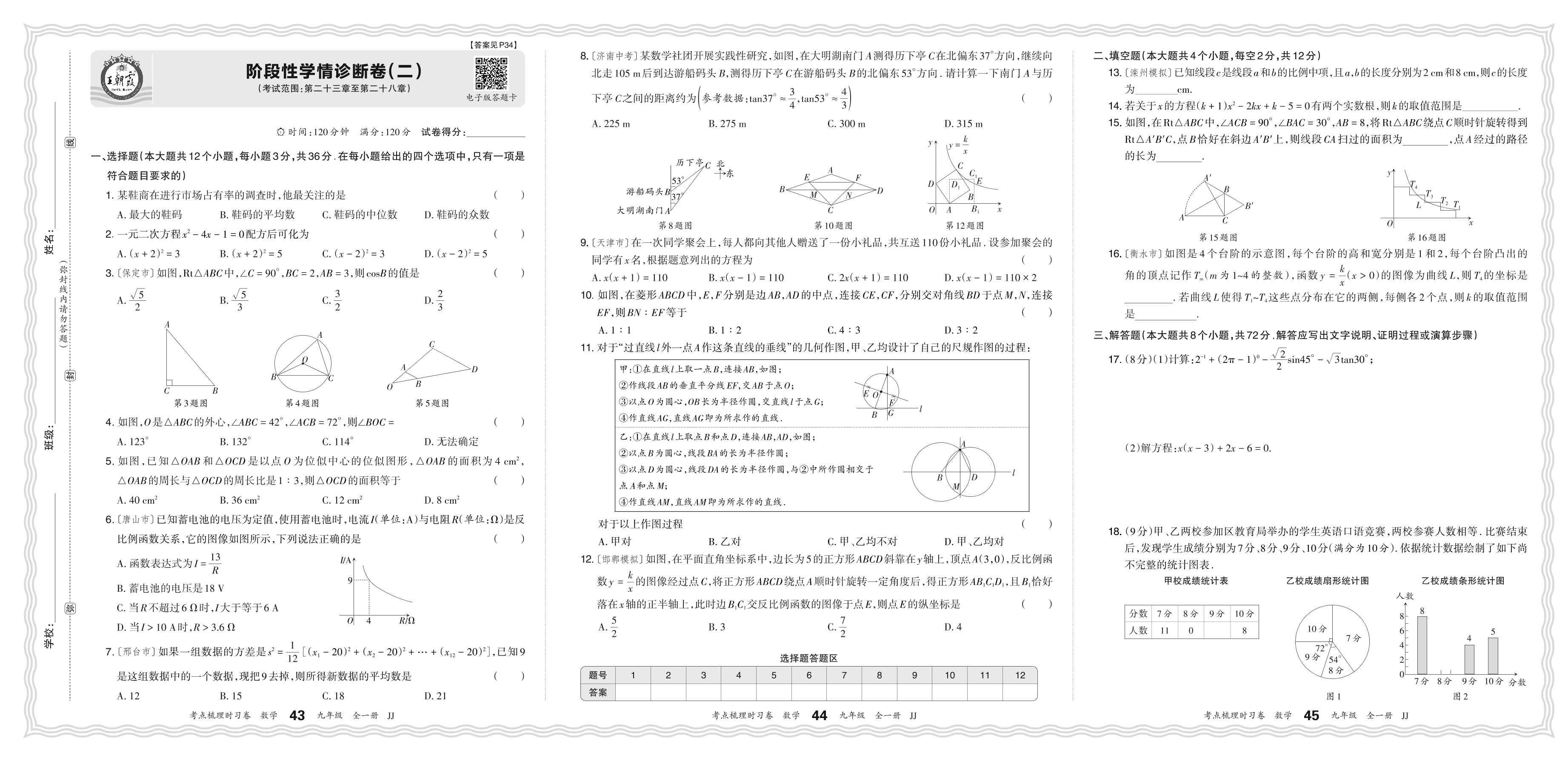 2024上册九年级数学冀教版 阶段性学情诊断卷(二)