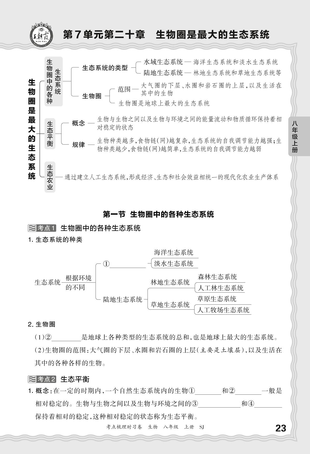 2024上册八年级生物苏教版 考点梳理手册——第7单元第二十章 生物圈是最大的生态系统
