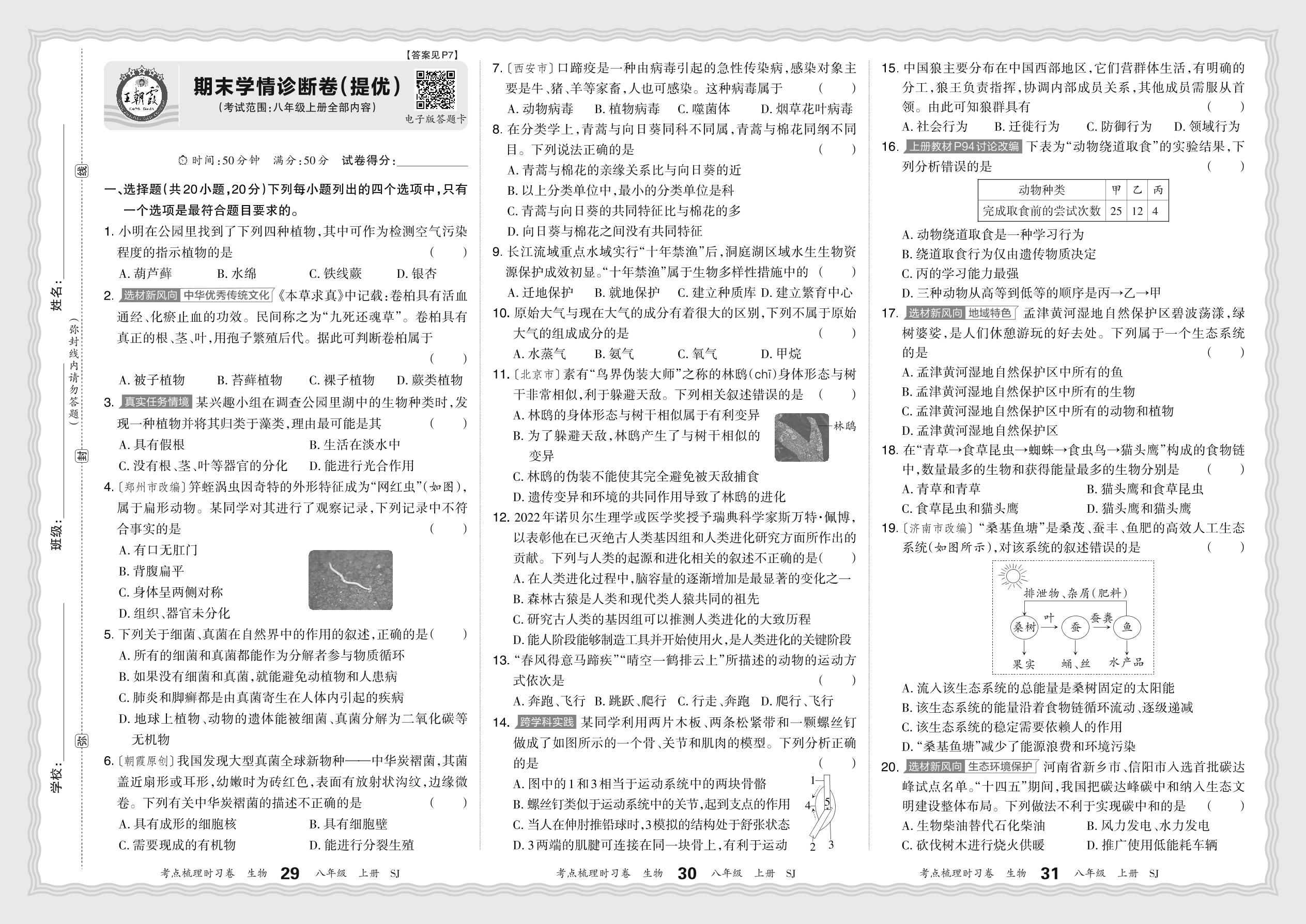 2024上册八年级生物苏教版 期末学情诊断卷(提优)