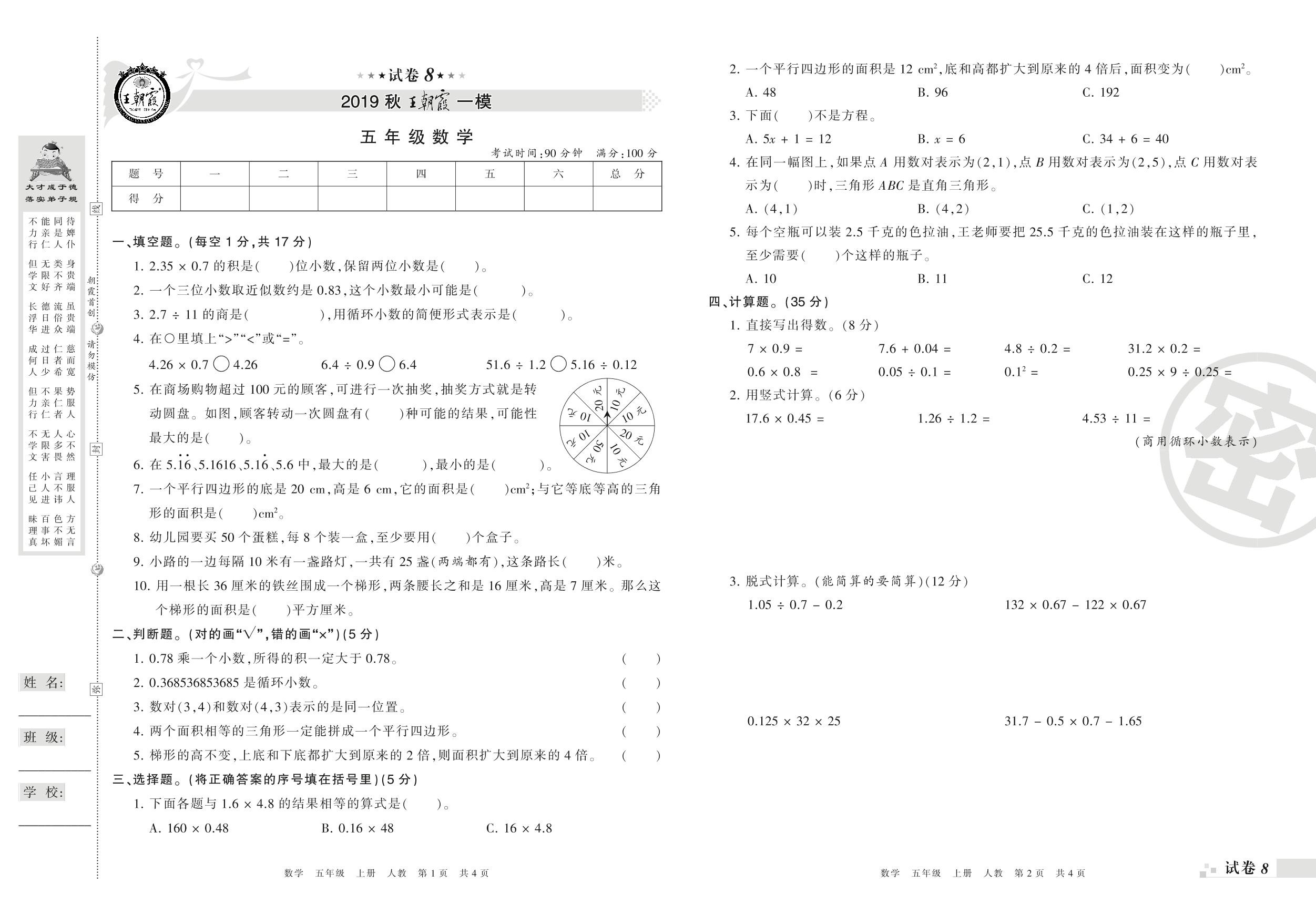 王朝霞期末模拟卷五年级上册数学(人教版)_R210804172619【8】