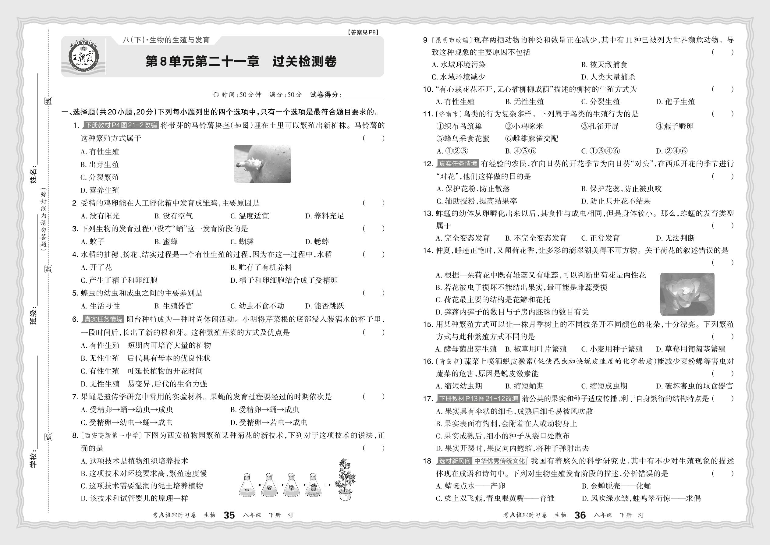 八年级生物苏教版下册单元卷