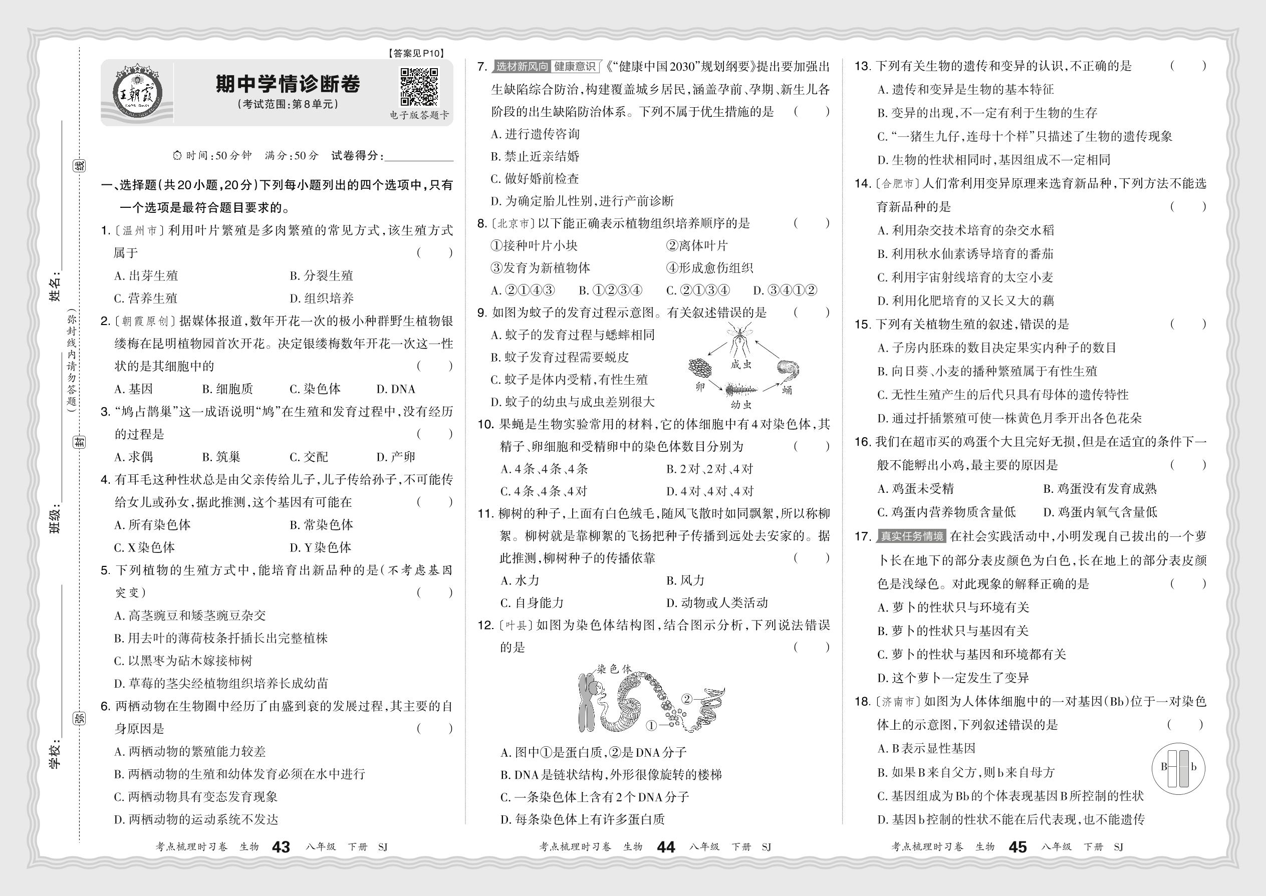 八年级生物苏教版下册期中卷