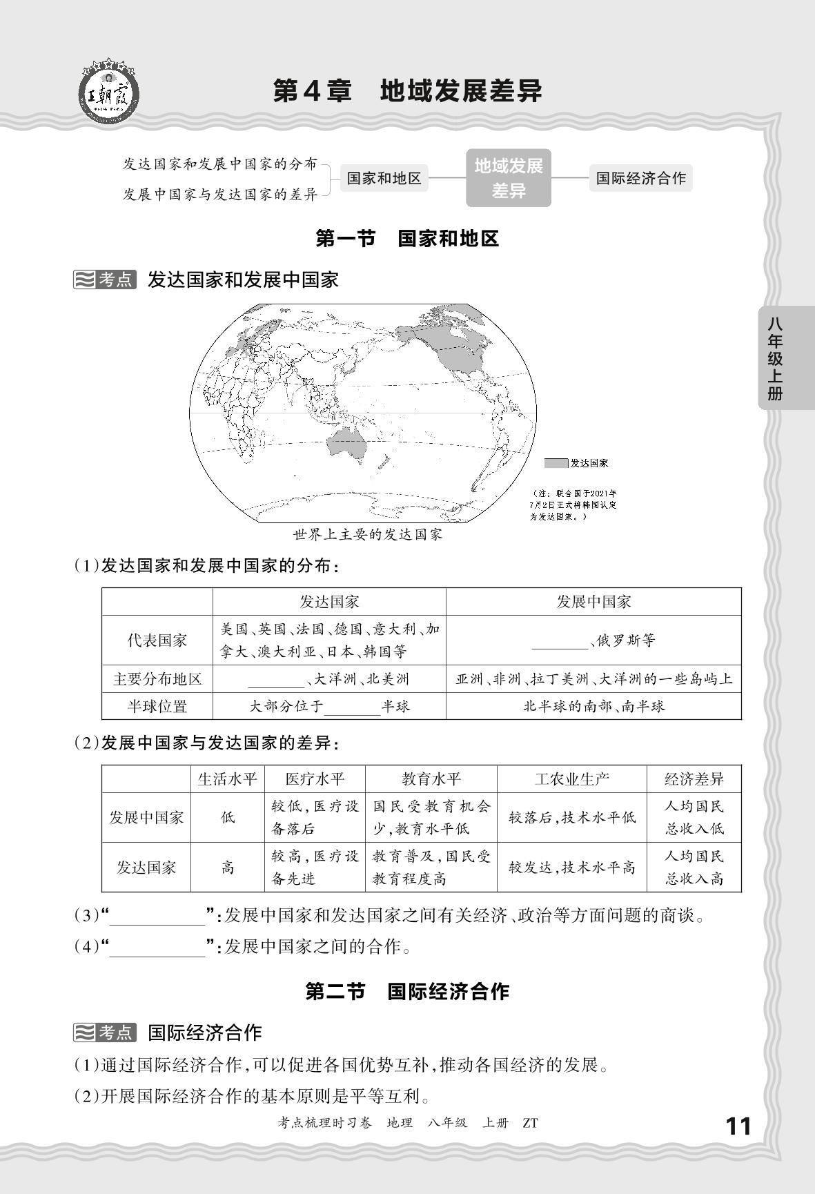 2024上册八年级地理中图版 考点梳理手册——第4章 地域发展差异
