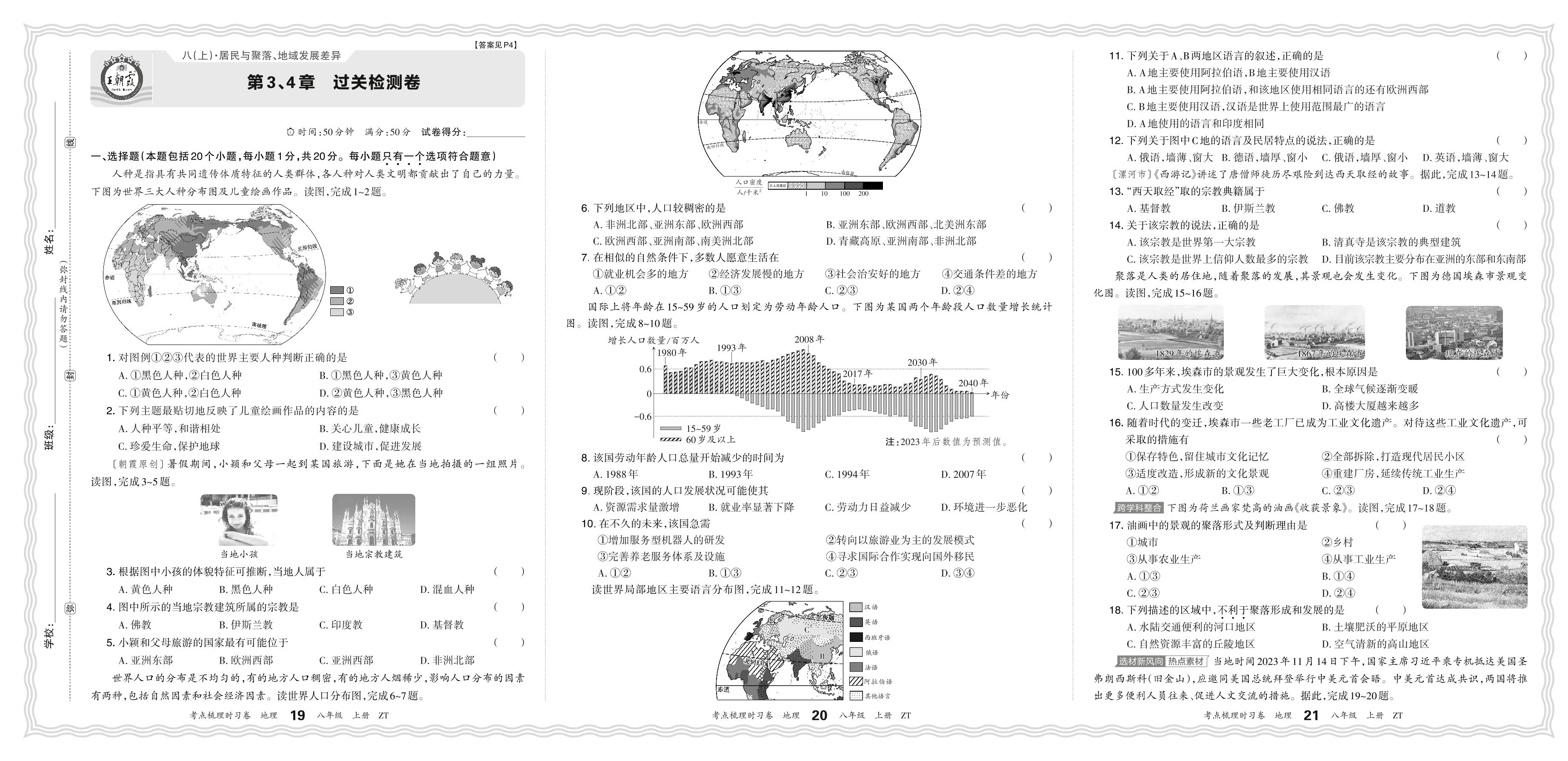 2024上册八年级地理中图版 第3、4章 过关检测卷