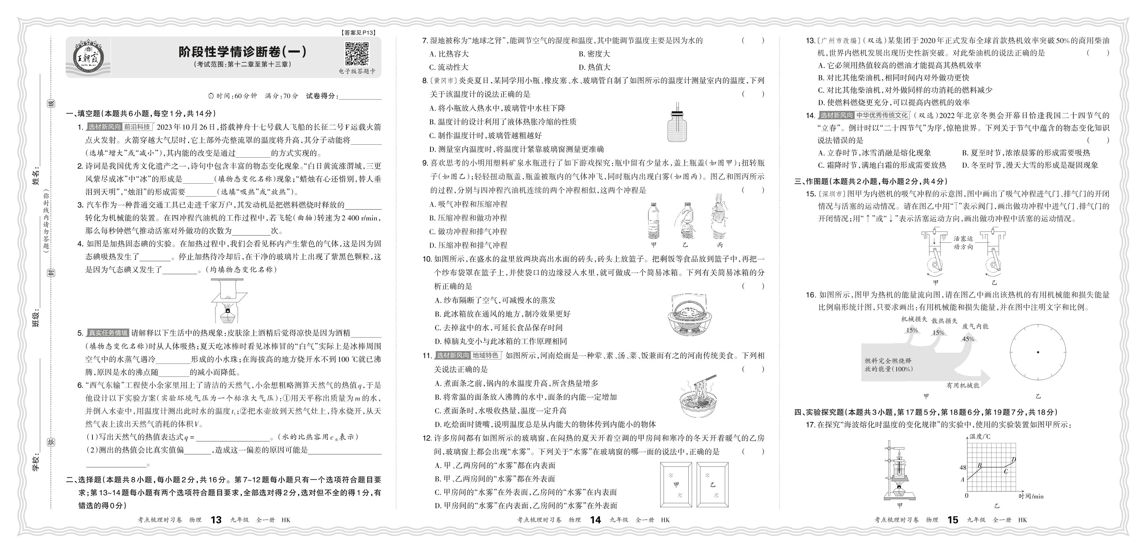 2024-2025学年九年级物理沪科版 阶段性学情诊断卷(一)