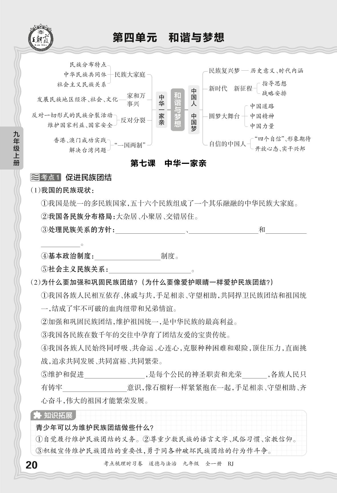 2024上册九年级道德与法治人教版 考点梳理手册——第四单元 和谐与梦想