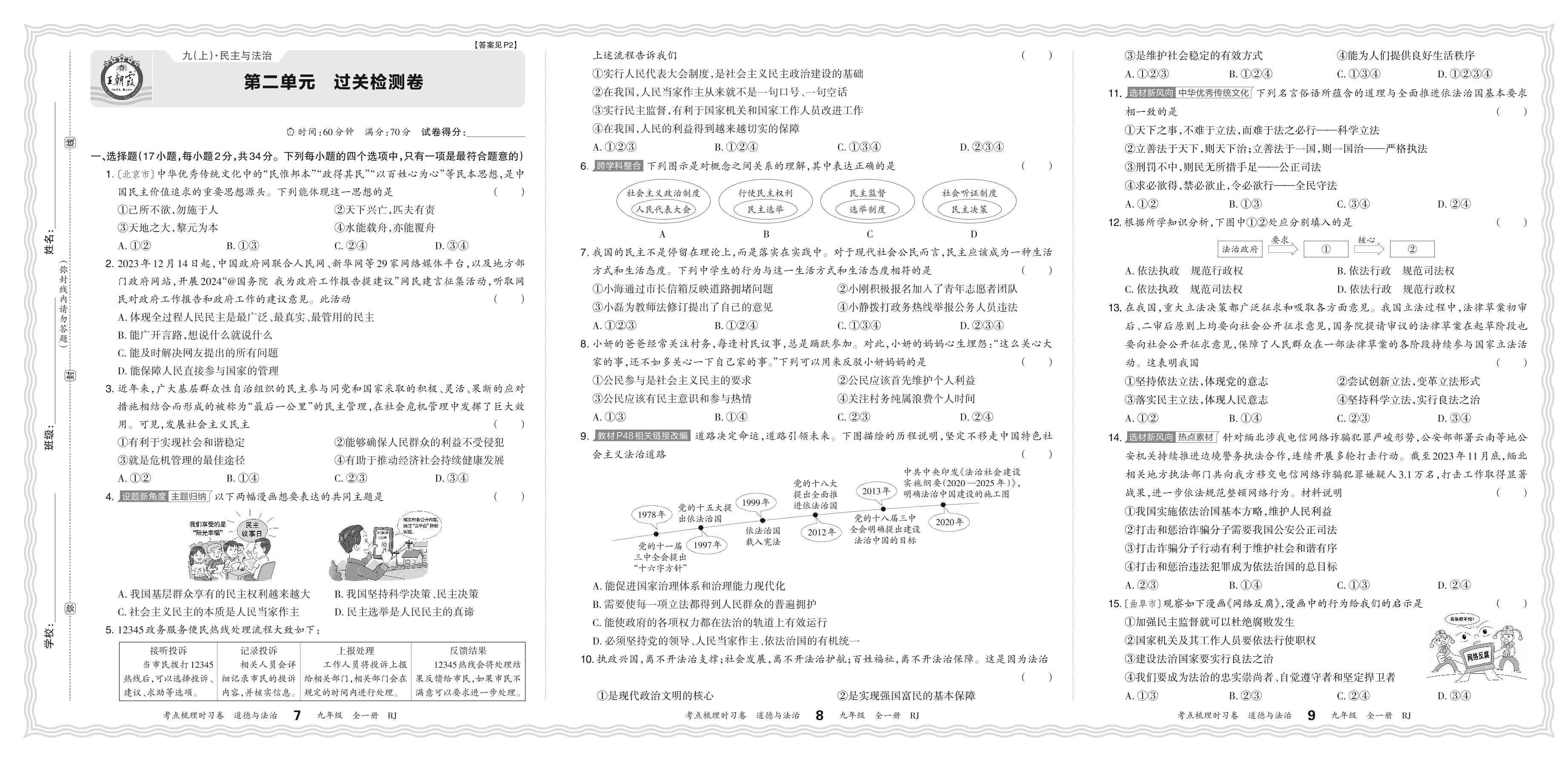 2024上册九年级道德与法治人教版 第二单元 过关检测卷