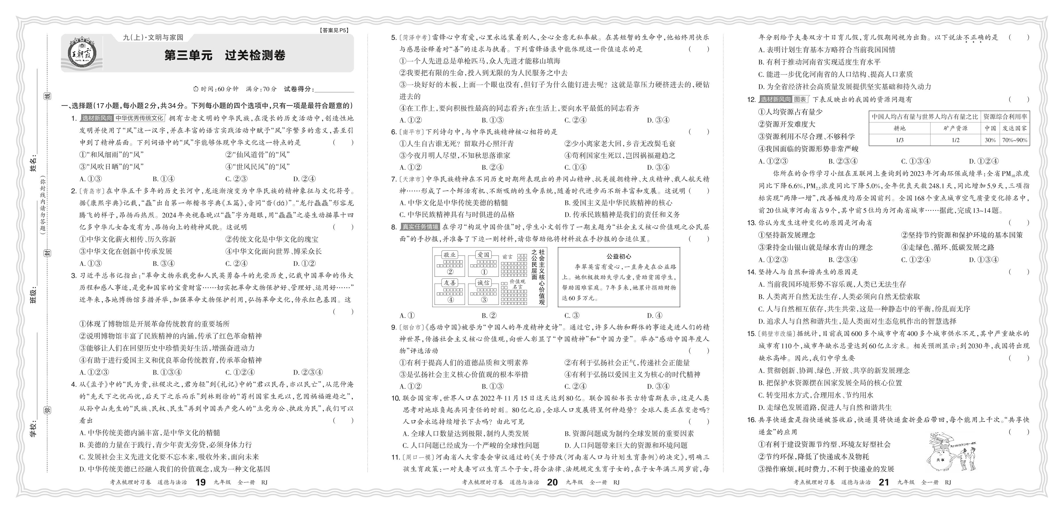 2024上册九年级道德与法治人教版 第三单元 过关检测卷