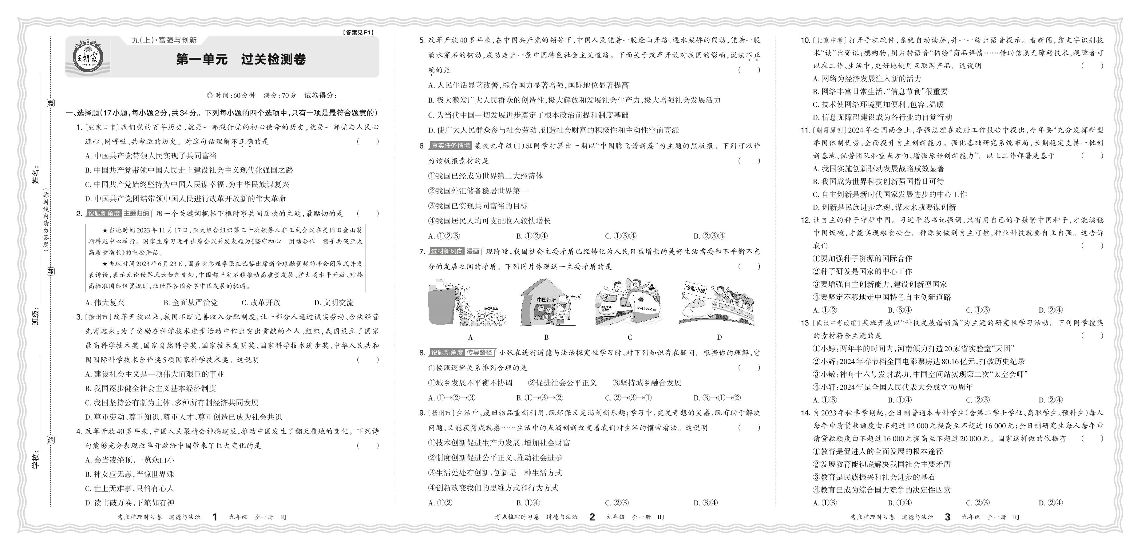 2024上册九年级道德与法治人教版 第一单元 过关检测卷