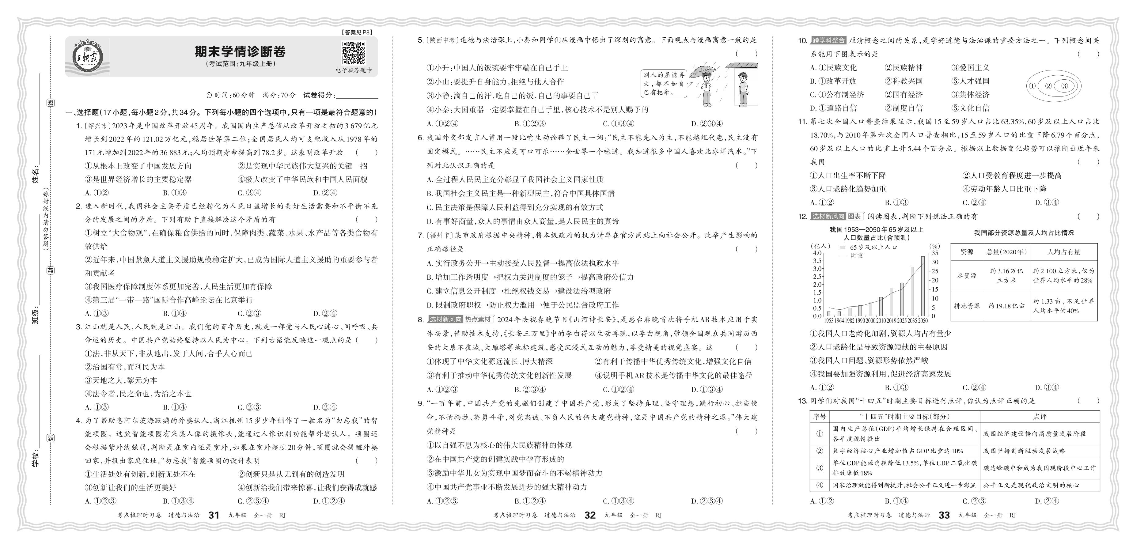 2024上册九年级道德与法治人教版 期末学情诊断卷