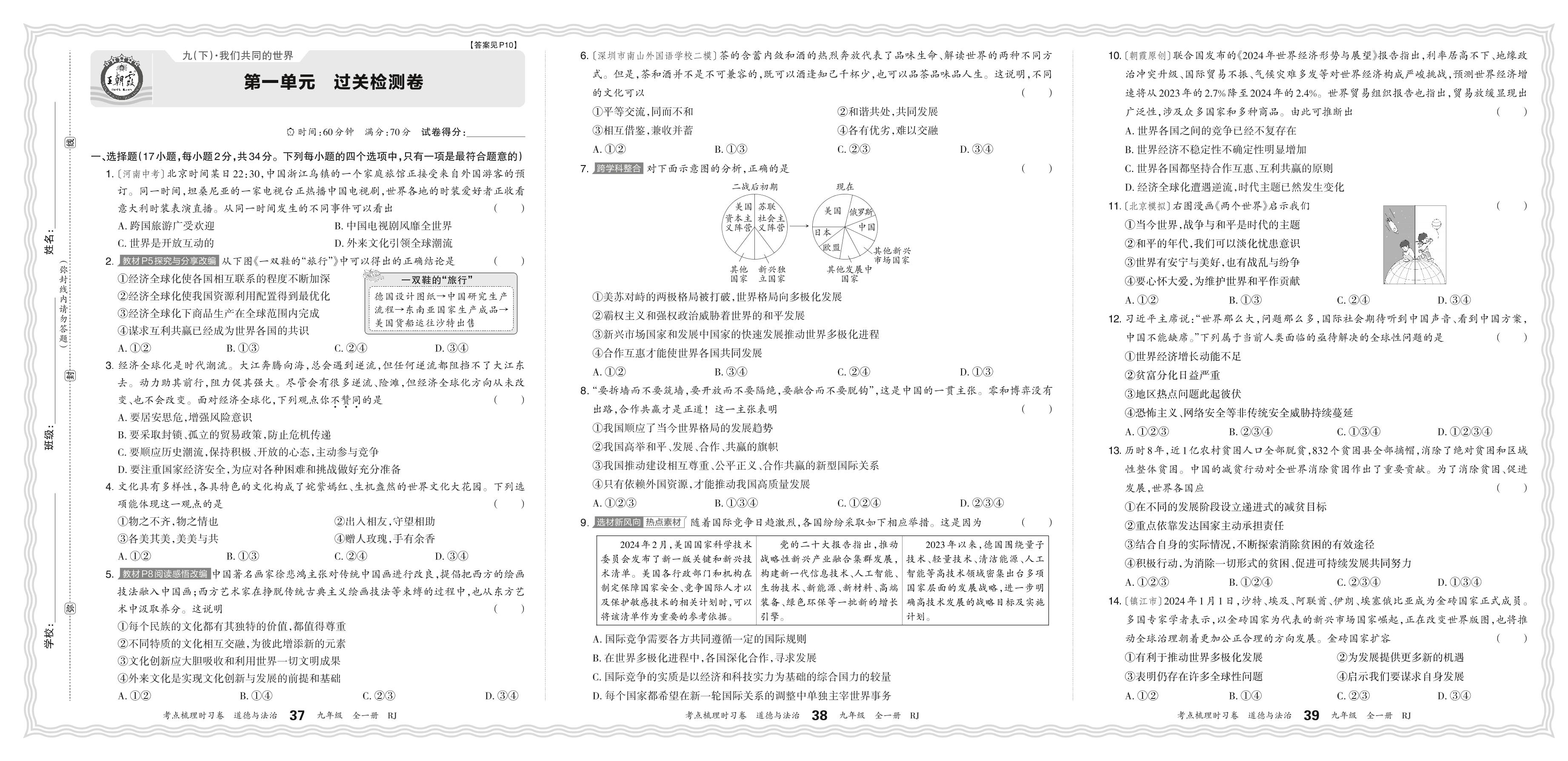 2025下册九年级道德与法治人教版 第一单元 过关检测卷