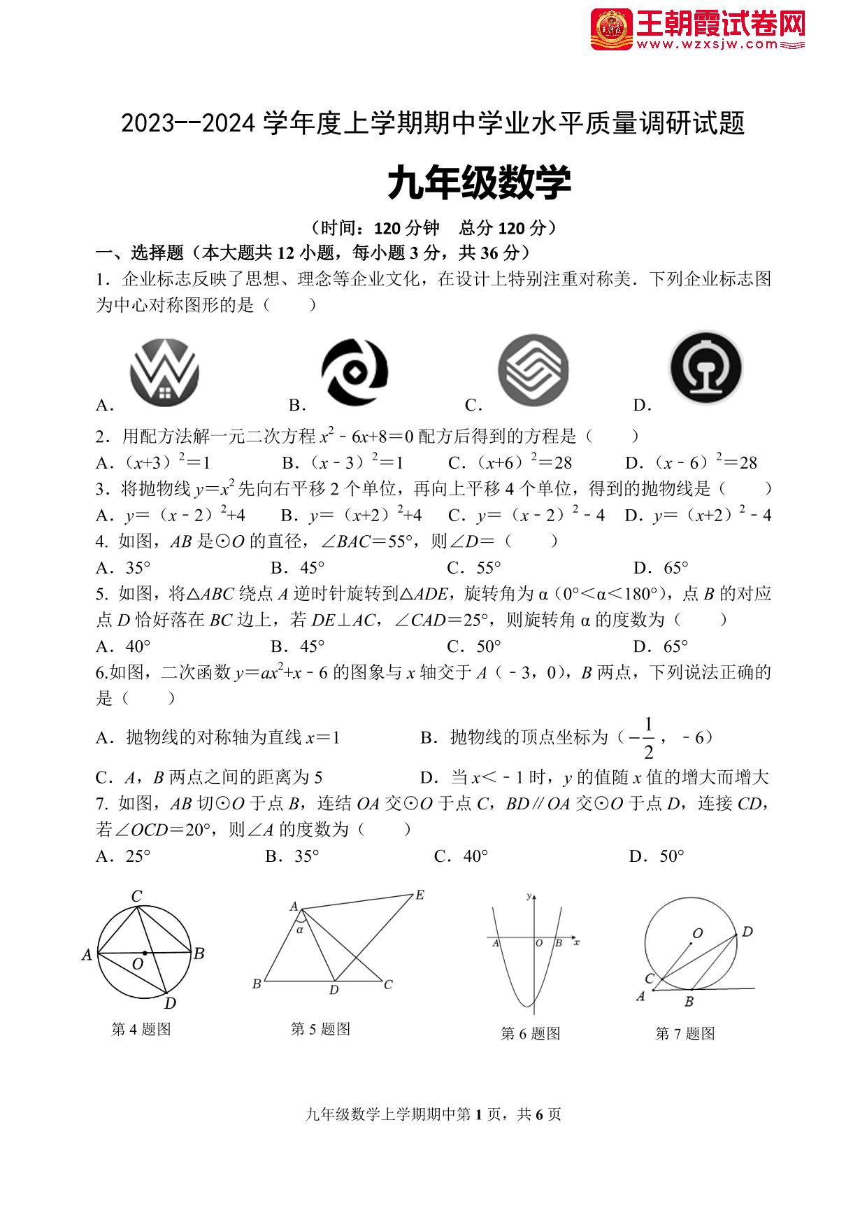 山东省临沂市罗庄区2023-2024学年度上学期期中学业水平质量调研试题九年级数学(人教版)