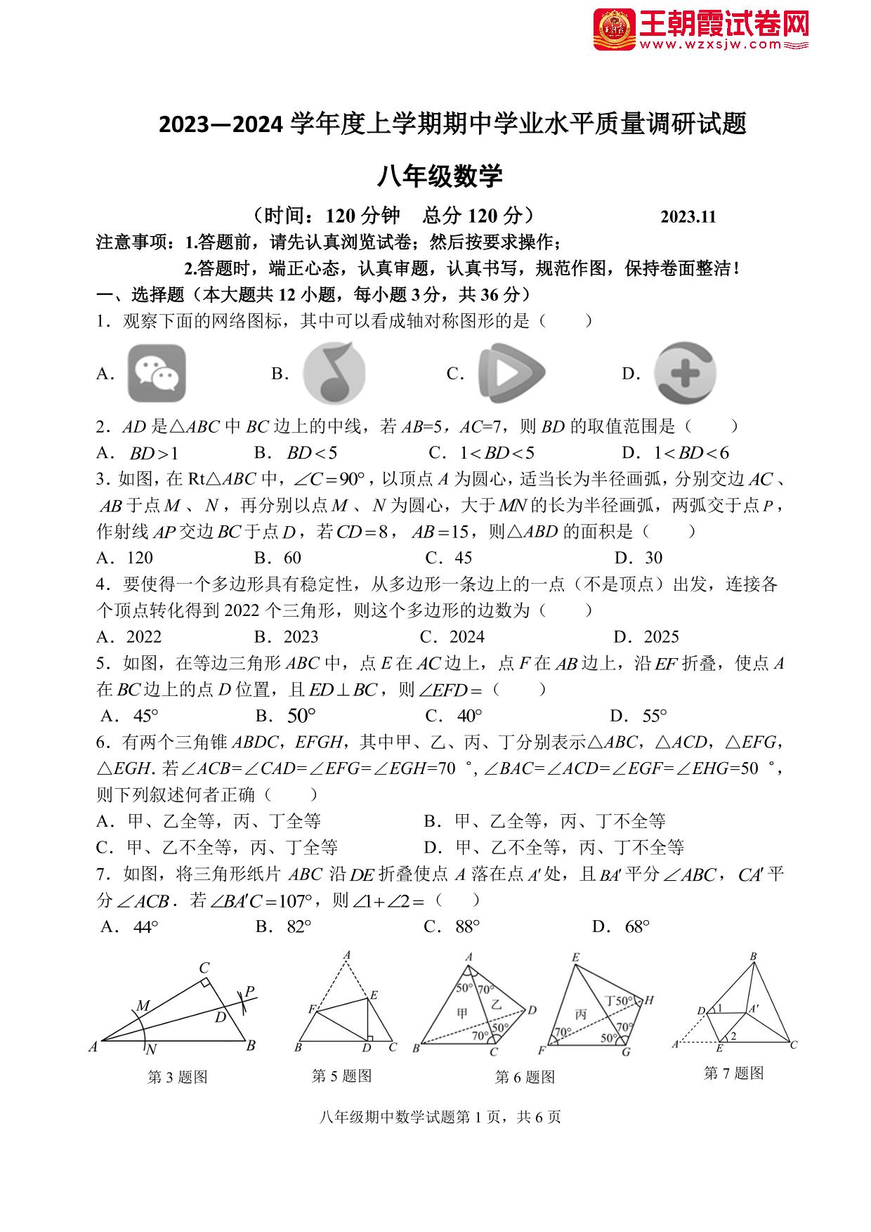 八年级数学人教版上册期中卷