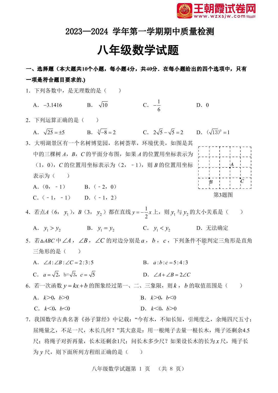山东省济南市东南片区2023-2024学年第一学期期中质量检测八年级数学(北师版)