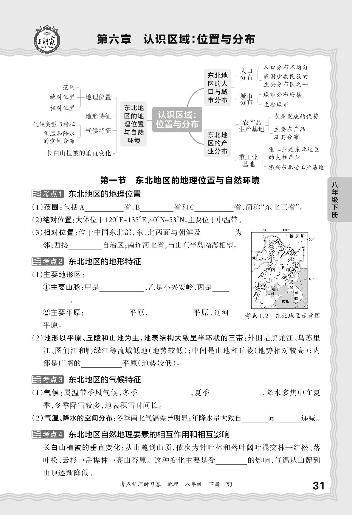 2025下册八年级地理湘教版 考点梳理手册——第六章 认识区域:位置与分布