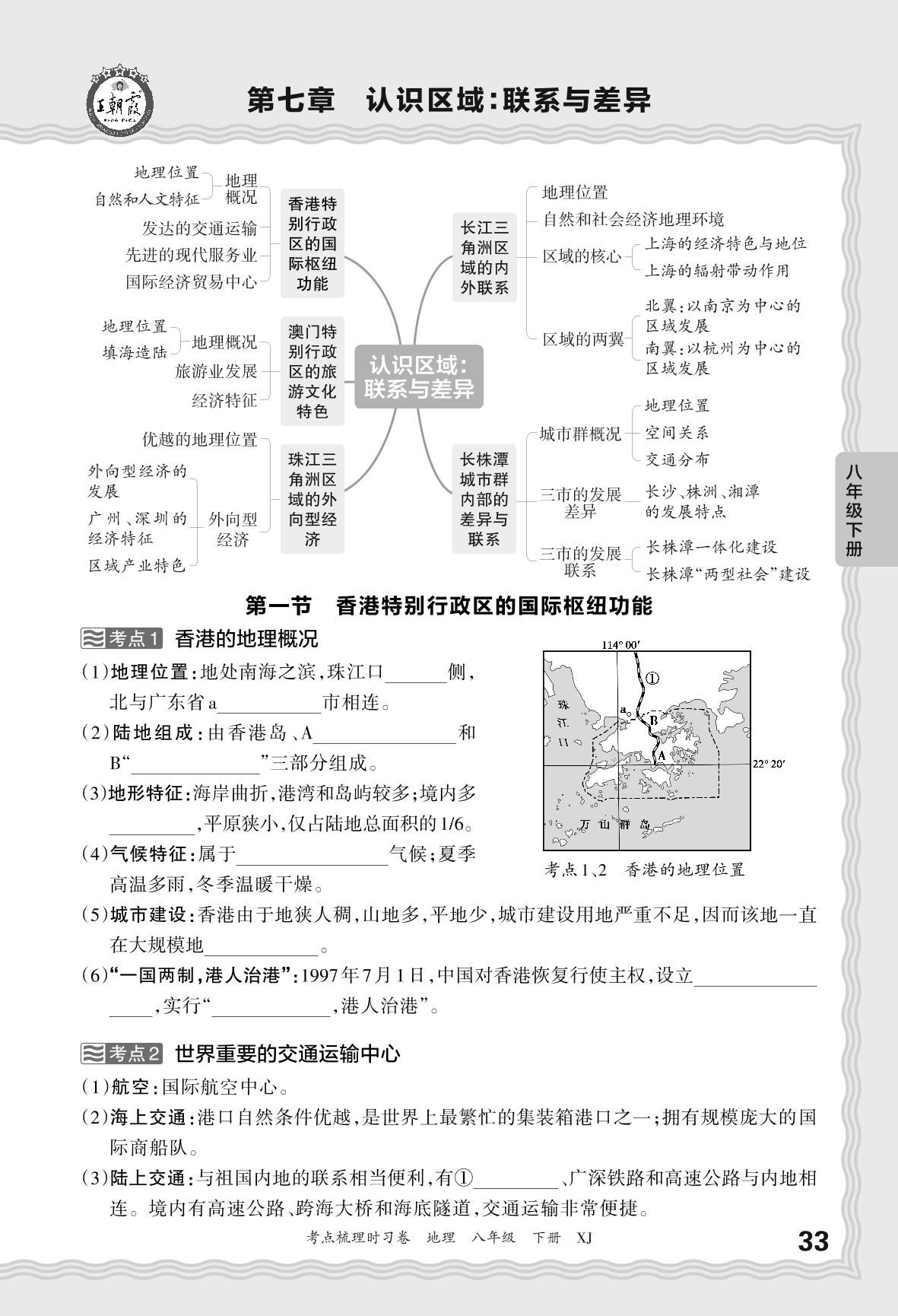 2025下册八年级地理湘教版 考点梳理手册——第七章 认识区域:联系与差异