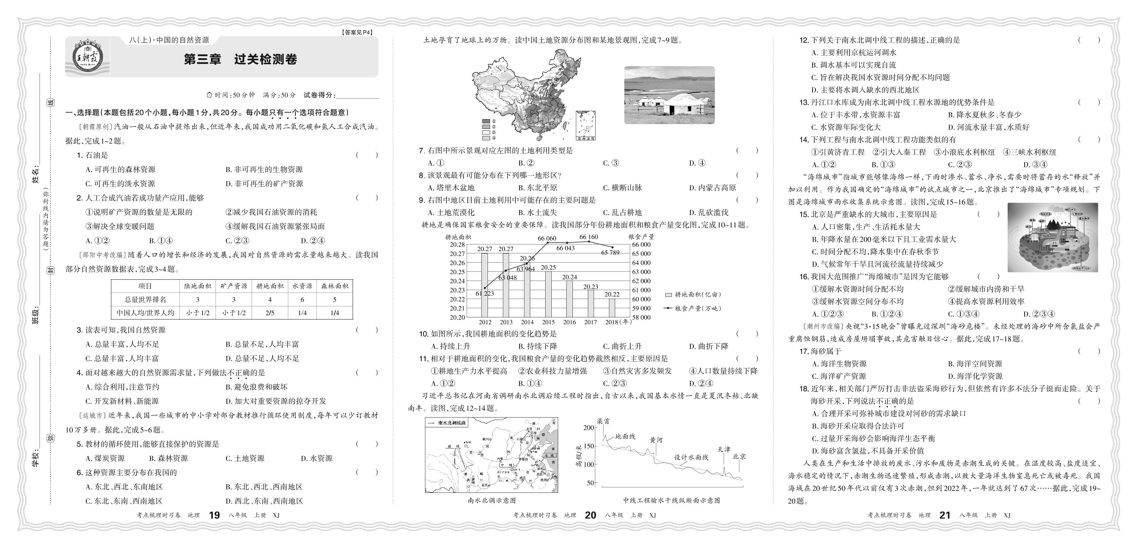2024上册八年级地理湘教版 第三章 过关检测卷