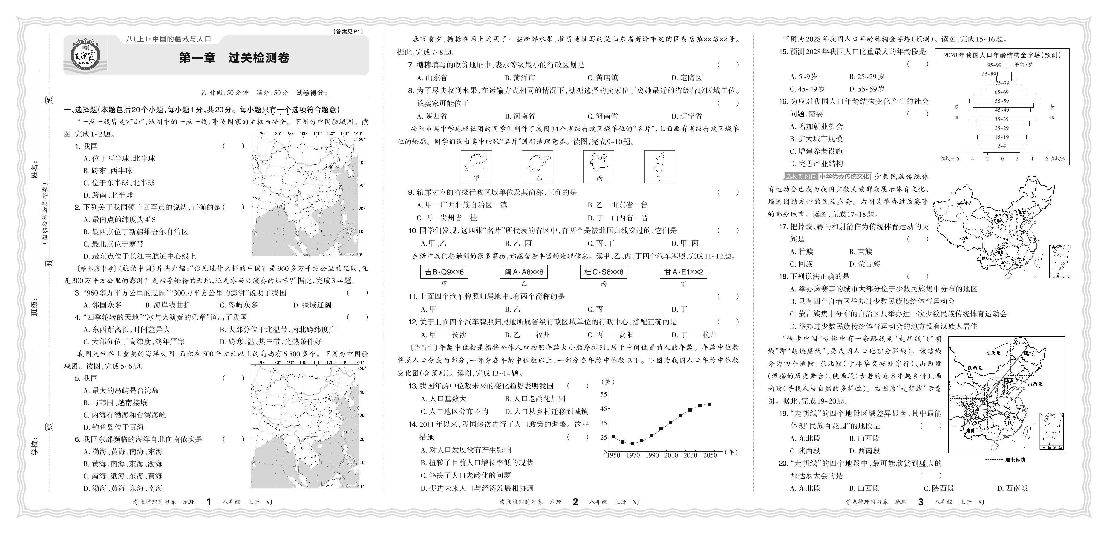 2024上册八年级地理湘教版 第一章 过关检测卷