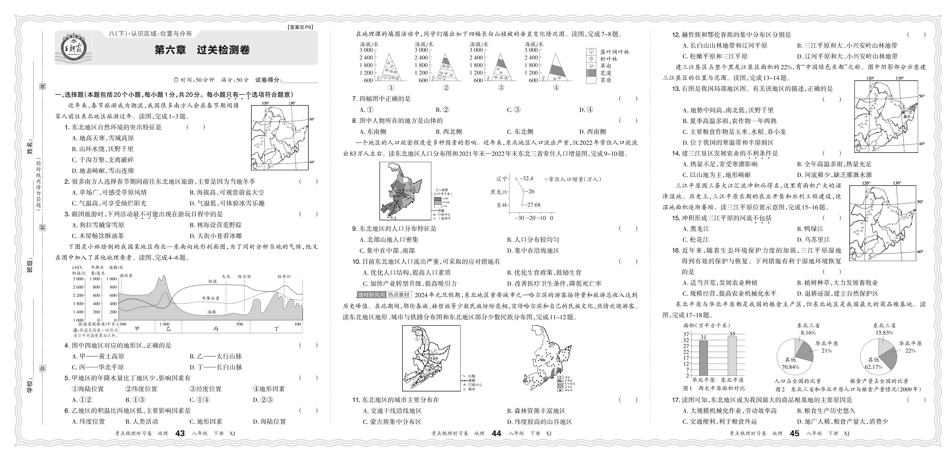 2025下册八年级地理湘教版 第六章 过关检测卷
