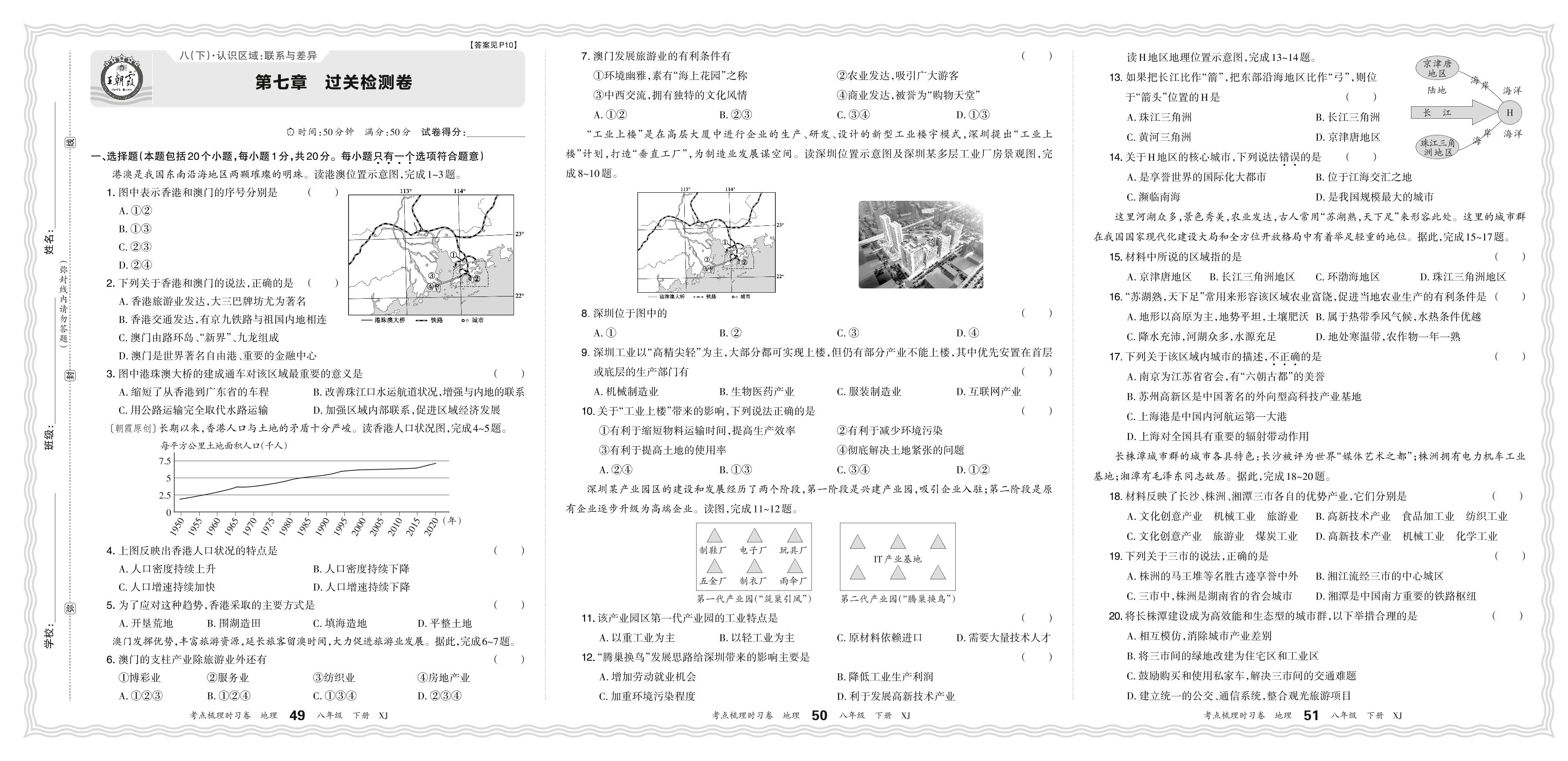 2025下册八年级地理湘教版 第七章 过关检测卷