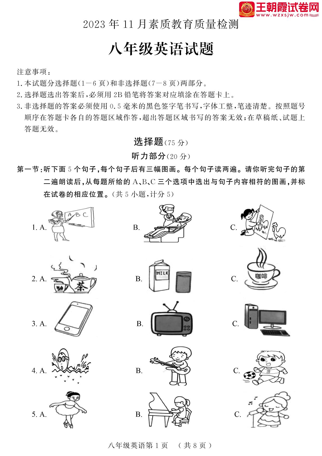 山东省菏泽市曹县2023-2024学年上学期期中素质教育质量检测八年级英语(人教版)【无听力音频】