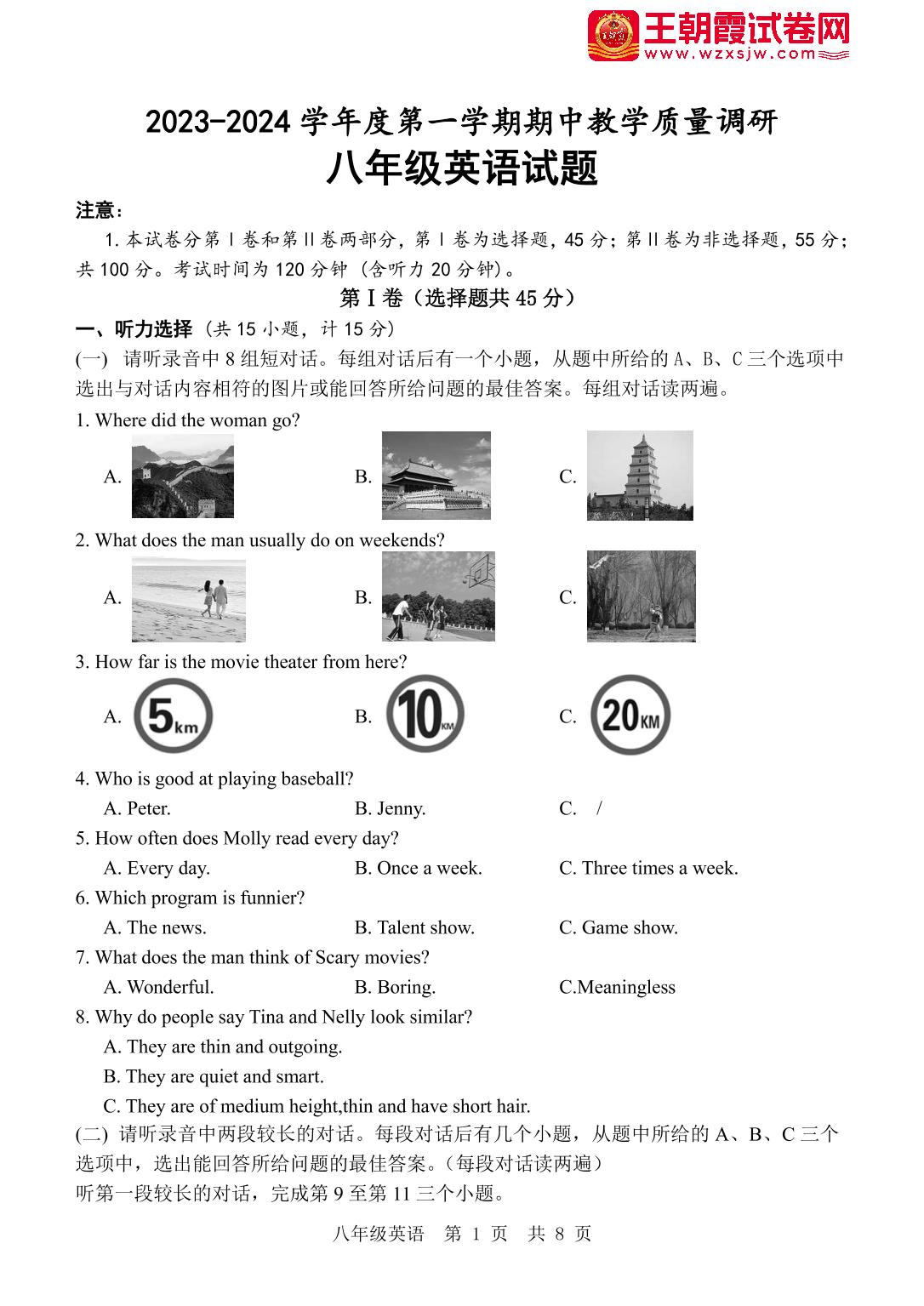 山东省济宁市鱼台县2023-2024学年度第一学期期中教学质量调研八年级英语(人教版)【无听力音频】