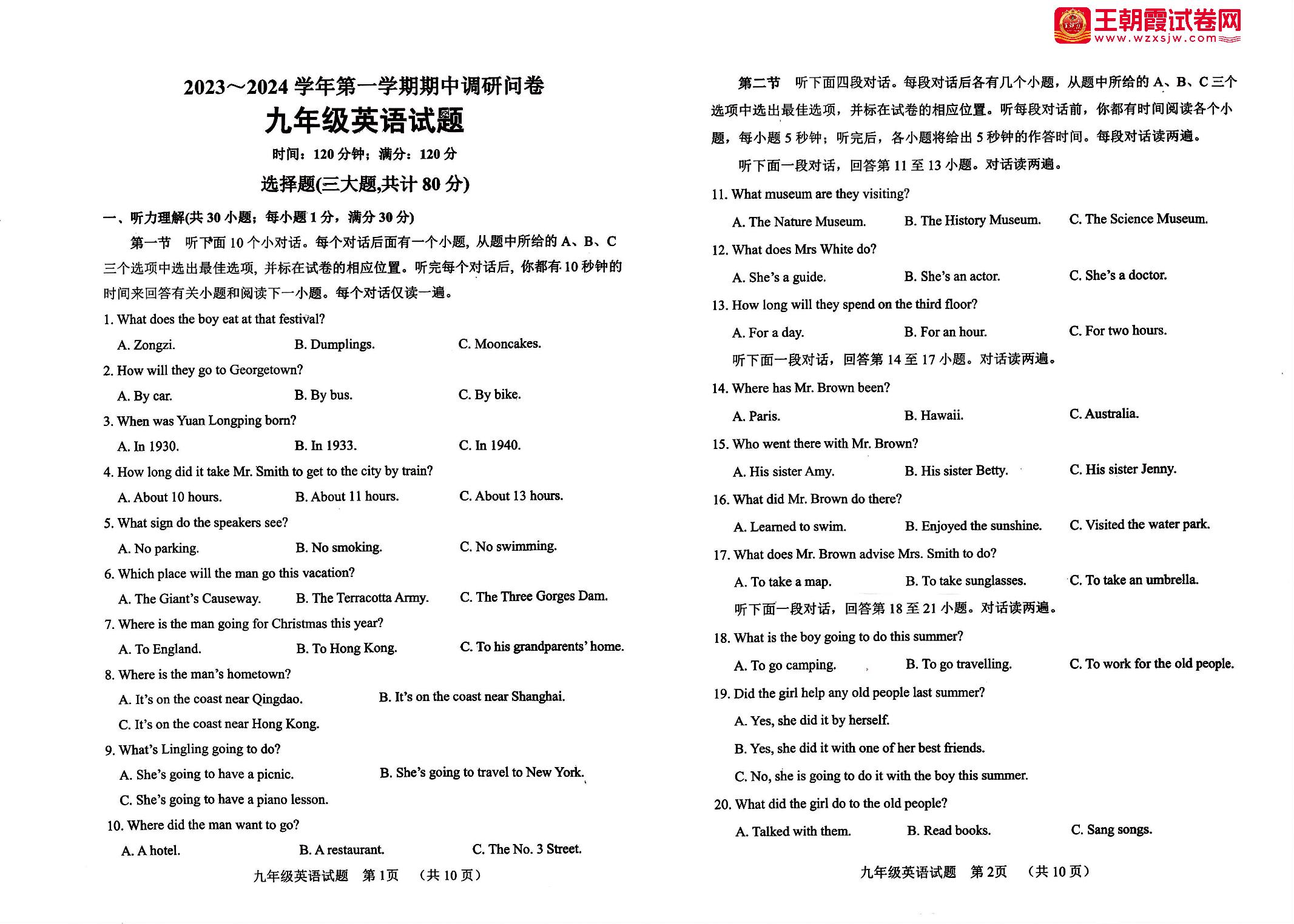 山东省聊城市临清市2023-2024学年第一学期期中调研问卷九年级英语(外研版)