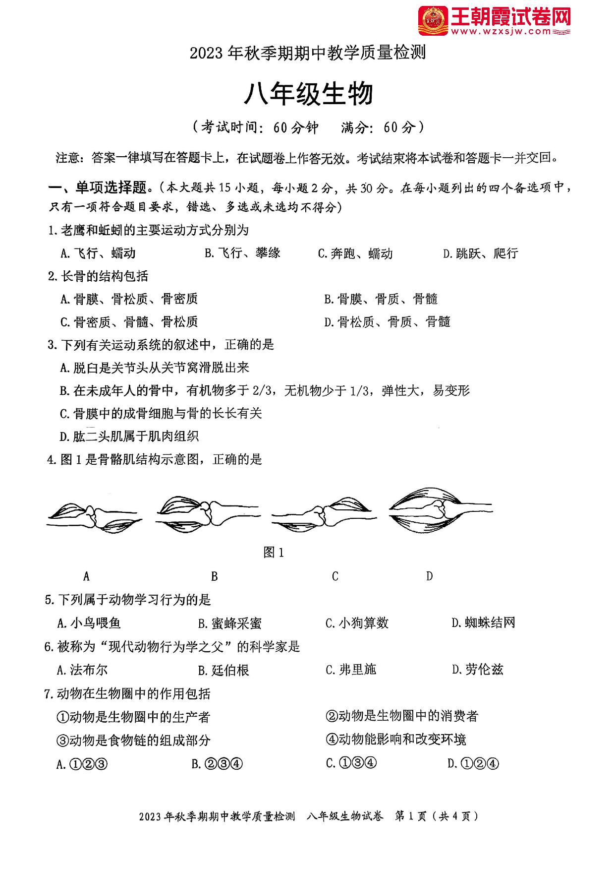 广西贵港市桂平市2023-2024学年上学期期中教学质量检测八年级生物(北师版)
