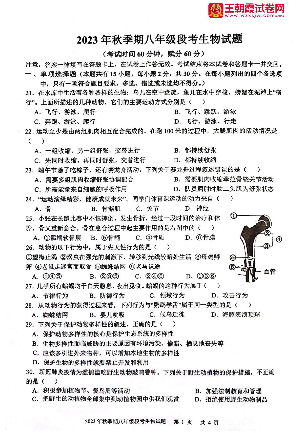 广西贵港市平南县2023-2024学年上学期期中试题八年级生物(北师版)